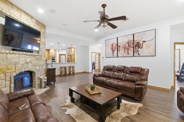 Welcome to 160 Falcon Drive in Weatherford, Texas in Parker County Located in Peaster ISD. On This Picturesque 15.056 Acre Property in Quail Springs Ranch You Will Experience the Perfect Blend of Serene Country Living &' Modern Comfort. Drive Through the Custom Electric Gate Up the Paved Driveway Past the Tranquil Pond to This Exceptional Wood and Rock Home. This Property Welcomes You With a Large Covered Front Porch Overlooking the Wildlife and Pond—Ideal for Relaxing or Entertaining. Inside, the Spacious 4-Bedroom, 2.5-Bath Home, You Will Love What This Layout Offers Which Is Versatility and Functionality. The Inviting Living Room Features a Cozy Rock Fireplace. The Expansive Modern Kitchen Is a Chef’s Dream—Equipped With Premium KitchenAid Appliances, a Gas Cooktop, Island With Wine and Beverage Refrigerators, Additional Bar-Top Seating, a Huge Walk-In Pantry, and an Eat-In Dining Area. The Separate Formal Dining Room Provides Space for Gatherings. There Is Also a Large Office With Built-Ins and a Closet That Offers Flexibility as an Additional Living Area, Playroom or Mancave. Retreat to the Primary Suite, Boasting Three Closets, a Japanese Soaking Tub, and a Separate Walk-In Shower. Every Bedroom Has Expansive Windows to View the Natural Wildlife and Trees. The Utility Room Also Serves as a Mud Room With Back Door to the Porch and Includes a Convenient Half Bath. Step Outside to a Generous Back Porch With an Attached Bonus Room—Ideal for a Man Cave, Craft Space, Office, or Pet Room. The Property Also Features a Huge Metal Shop With Concrete Floors, Electricity, a Full Bathroom, and Two Upstairs Rooms Perfect for Guest Accommodations, Office Space, or Recreation. Additional Amenities Include a Loafing Shed With an Enclosed Room for Tack, Grain or Hay. A Property That Has This Much Beauty and Natural Surroundings Is a Rare Find. Don’t Miss the Opportunity to Own This Well Maintained, Unique Property With Exceptional Features and Room to Grow.