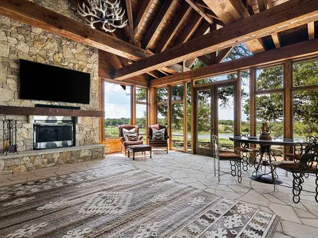 Modern Rustic Refined! Stunning luxury lodge-inspired home on gorgeous, 3 acre hilltop with magnificent architecture that’s harmonious with it’s gorgeous, manicured grounds and absolutely breathtaking views of peaceful countryside and private lake. Extensive luxe amenities throughout EVERY room wonderfully done to combine the perfect balance of modern amenities, while still embracing it’s rustic charm! Appointed with impressive dry-stacked stone exterior, as well as in various other areas of the home, plus massive, reclaimed Amish beams that offer fabulous focal points! Rocking chair porches with peaceful gardens, side courtyard with pergola and spacious covered back patio to enjoy it’s park-like trees & serene setting! Detached workshop with full guest qrtrs, plus another stand-alone structure finished with great cedar beams and ceiling work, and stone floors that’s perfect for the most INCREDIBLE home office, hunting mounts display room, exercise area, or possible future pool house! Incredible bi-level WORKSHOP just completed with over 14,000 sqft of interior space for the car enthusiast or countless other hobbies, plus additional private entry auto gate with concrete flatwork and approaches for easy access and loading! Truly the BOSS of all workshops!