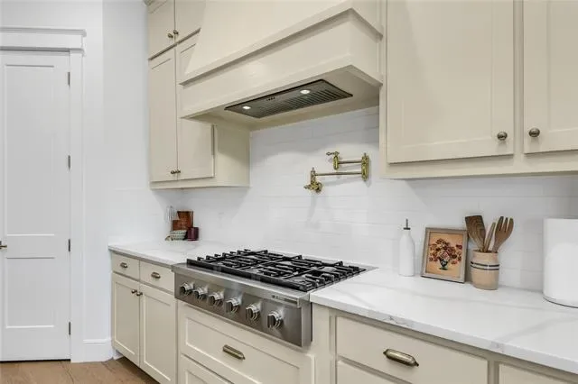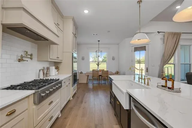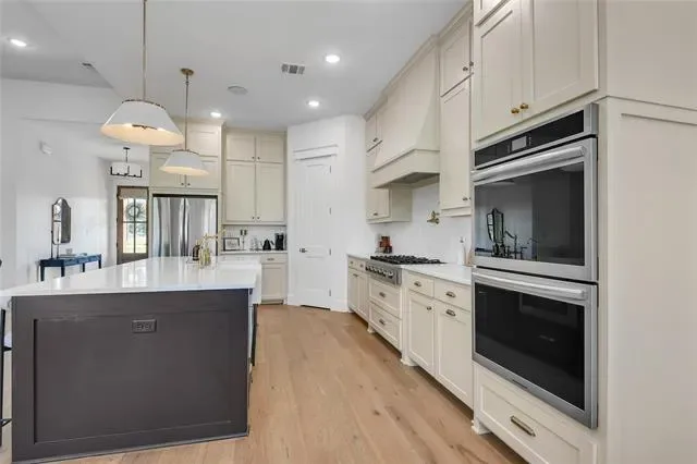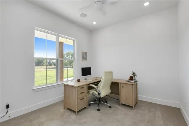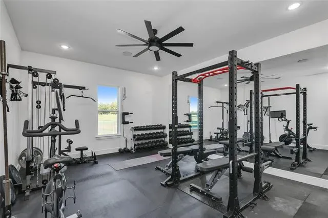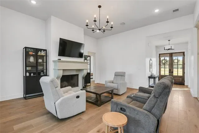 Nestled on 3.42 acres in Weatherford, Texas, this exceptional single story custom built home in Quail Springs offers a perfect blend of luxury, comfort, and functionality in the award-winning Peaster ISD!! Enjoy an abundance of wildlife, a serene natural backdrop including deer sightings and beautiful sunsets! Step into a light-filled, timeless masterpiece with double front entry doors, an open interior with 10 ft ceilings throughout, exceptional craftsmanship, engineered hardwood floors, elegant lighting, a private front office off the entry and huge game-bonus or work-out room facing the back. The spacious living boasts a striking oversized wood burning fireplace with cast stone mantle, seven zones of wired in-ceiling speakers and leads to an expansive patio area, ideal for entertaining. The large chef’s kitchen, located in the heart of the home is designed for both style and functionality. It features an abundance of custom ceiling-height cabinetry with soft-close drawers, Rejuvenation cabinet hardware, Quartz countertops, 36 inch farmhouse apron sink, subway tiled backsplash, pot filler, island with built-in microwave, pendant lights, Bosch six burner gas cooktop, double ovens and walk-in pantry. The primary suite is a private retreat with a custom walk-in closet, oversized double rain head shower with frameless glass enclosure, separate freestanding tub, Zellige wall tile and duel split vanities. All secondary bedrooms are generously sized with ample closet space, offering comfort and flexibility for guests or kids plus an oversized utility room with dog door. The expansive backyard with large dog run has both an open and uncovered extended concrete patio offering endless possibilities. The three car garage with tankless water heater, additional side door, and extended driveway, provide ample parking space. This exceptional home is a rare find in Quail Springs and more than just a home, it’s a lifestyle. Schedule your showing today and welcome to Quail Springs!