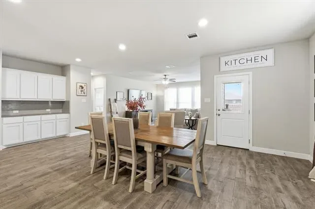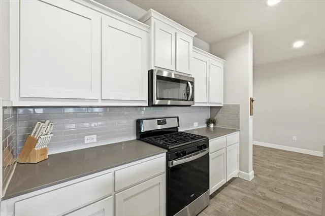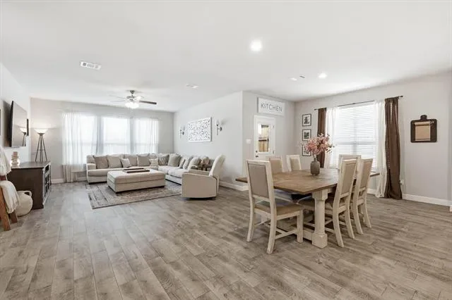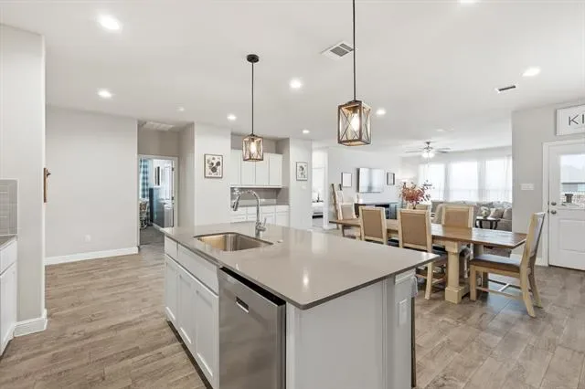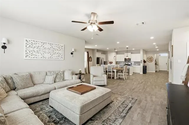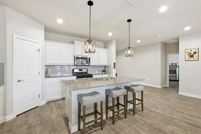 Experience elevated living in this exceptional, perfectly situated home in the sought-after Ranches West community of Weatherford. Ideally located near scenic parks and local attractions, this home offers a seamless blend of sophistication, comfort, and convenience. Thoughtfully designed, this single-story floorplan showcases 4 bedrooms, 2 baths, and an expansive open-concept layout that exudes both elegance and functionality. At the heart of the home, a chef-inspired kitchen impresses with a grand island, gleaming quartz countertops, stainless steel appliances with a gas range, custom tile backsplash, butler’s pantry, and a spacious pantry, perfectly suited for both everyday living and entertaining. The private owner’s suite serves as a serene retreat, featuring a spa-like bathroom with dual quartz vanities, an oversized walk-in shower, linen storage, and a beautifully appointed walk-in closet with built-ins. A split-bedroom design enhances privacy, while the secondary bath continues the home’s refined aesthetic with quartz finishes. Designer details elevate every space, including extensive tile flooring throughout the main living areas, creating a clean and cohesive look. Modern luxury meets innovation with integrated smart home technology, a gas tankless water heater, and energy-efficient features designed for today’s lifestyle. Step outside to a covered patio overlooking a fully fenced backyard, ideal for relaxing evenings or fun outdoor gatherings. The professionally landscaped grounds, complete with a full sprinkler system and coach lighting, provide stunning curb appeal. Residents of Ranches West enjoy exclusive access to community amenities including a park, playground, and multi-use field, all just moments from the shopping, dining, and charm of Weatherford.