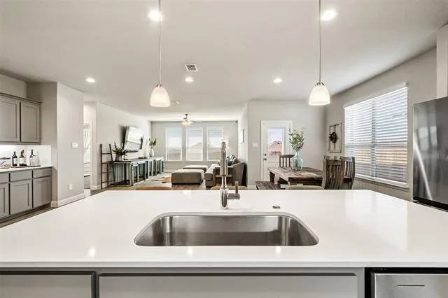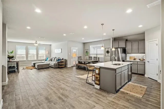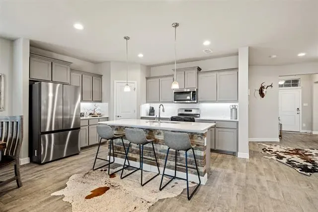 Welcome Home! This upgraded 3 yr old new build has more beautiful features than you can imagine. See this home that has stone flowerbeds and landscape, stone for drainage, solar lighting, added epoxy garage floor, built in garage cabinetry and trim and upgraded primary bathroom shower head. And so many more touches to accommodate your buyer. Perfectly placed 30 min from Fort Worth, close to restaurants, entertainment, state and local parks, and a water park! The open floor concept is perfect for entertaining with an oversized kitchen and dining area that will not disappoint. Enjoy a connected butler pantry and walk in pantry with ample counter space in the your new kitchen. The home boasts of seller pride and has 4 bedrooms and 2 full baths with a built-in cabinet unit in the dining area to give excessively more storage. The quaint home sits on a spacious corner lot. Some finishes include granite countertops, ceramic flooring, an oversized laundry room with a cozy entry hall with cubby units from the garage that is full of storage. The oversized kitchen pantry and secondary bedrooms meet the needs of your growing family. This home is equipped with a tankless hot water heater to supply endless hot water to more than accommodate the needs of this home. THIS IS A MUST SEE