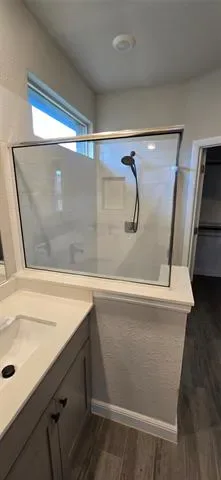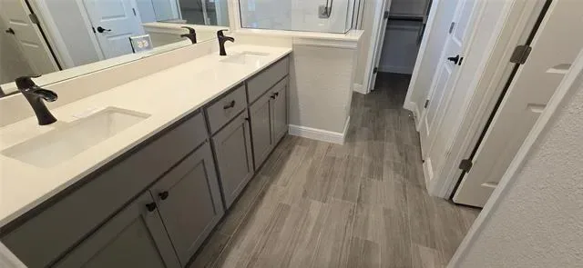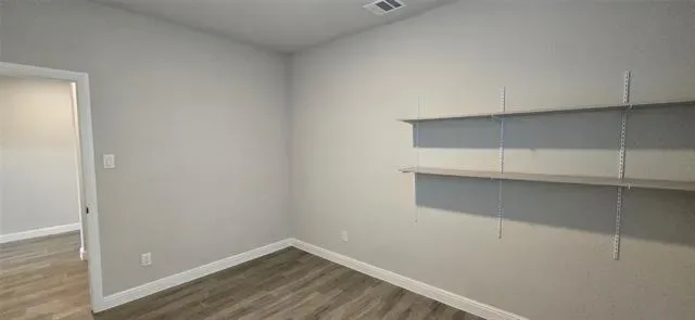 The primary suite is split for privacy, with a walk-in closet and a full bath that gives you separation from the secondary bedrooms. Two additional bedrooms and a full bath are positioned on the opposite side, making the setup work well for guests, kids, or a home office.