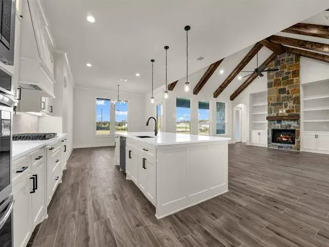 25K CONCESSIONS! MOVE IN READY! LBK Homes has just completed a New Traditional Style home at the Brand NEW Sub-Divsion Rangewood . This is a beautiful 2 acre Home with 4 bedrooms, study and 3 car garage with 3 bathrooms. The home has an inviting foyer that brings out the spacious family room filled with excellent cross beams and craftsmanship throughout. The kitchen is accompanied with an enormous quartz island in the center, double ovens with a pot filler all stainless steel and lg over sized cabinets with upper and lower cabinet lighting. The primatry suite has a large walk in closet a separate tub and a separate shower and vanities. Full encapsulation for excellent efficiency. Underground utilities with AT&T fiber as internet provider. NO HOA and NO City Taxes! Home is in now 100% Complete!