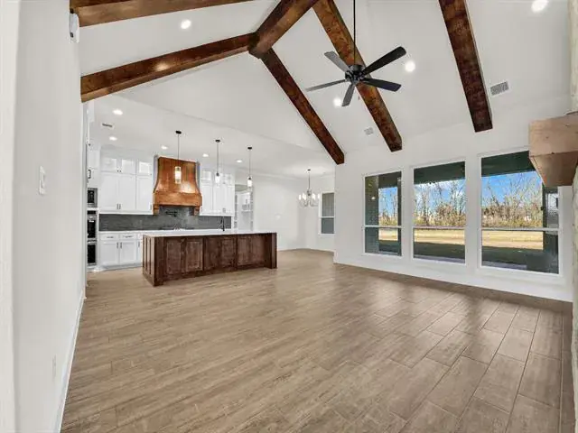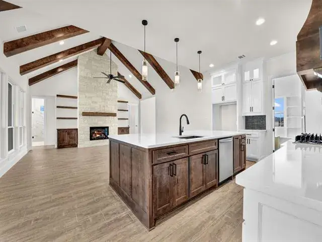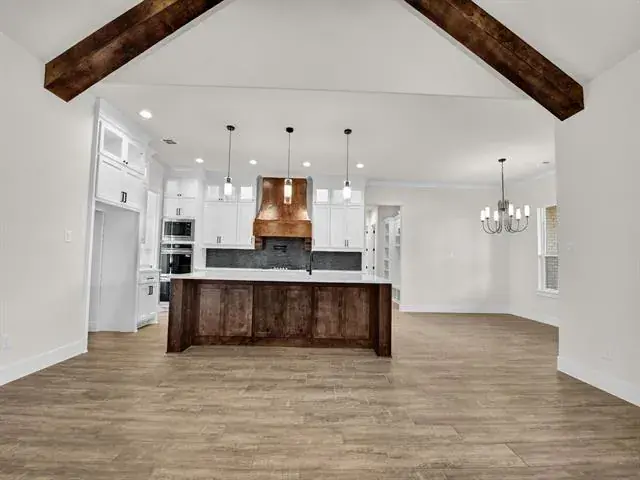 25 K CONCESSIONS MOVE IN READY! LBK Homes has just completed a New Traditional Style home at the Brand NEW Sub-Divsion Rangewood . This is a beautiful 2 acre Home with 3 or 4 bedroom has a flex room that can be bedroom or study!, Also included is a dining and game room and 3 car garage with 3 bathrooms. The home has an inviting foyer that brings out the spacious family room filled with a vaulted living room ceiling and beautiful beams and craftsmanship throughout. The kitchen is accompanied with an enormous quartz island in the center, double ovens with a pot filler all stainless steel and lg over sized cabinets with upper and lower cabinet lighting. The primatry suite has a large walk in closet a separate tub and a separate shower and vanities. Full encapsulation for excellent efficiency. Underground utilities with AT&T fiber as internet provider. NO HOA and NO City Taxes! Home is now 100 Complete!