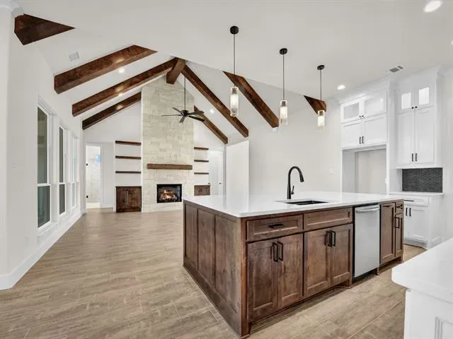 25 K CONCESSIONS MOVE IN READY! LBK Homes has just completed a New Traditional Style home at the Brand NEW Sub-Divsion Rangewood . This is a beautiful 2 acre Home with 3 or 4 bedroom has a flex room that can be bedroom or study!, Also included is a dining and game room and 3 car garage with 3 bathrooms. The home has an inviting foyer that brings out the spacious family room filled with a vaulted living room ceiling and beautiful beams and craftsmanship throughout. The kitchen is accompanied with an enormous quartz island in the center, double ovens with a pot filler all stainless steel and lg over sized cabinets with upper and lower cabinet lighting. The primatry suite has a large walk in closet a separate tub and a separate shower and vanities. Full encapsulation for excellent efficiency. Underground utilities with AT&T fiber as internet provider. NO HOA and NO City Taxes! Home is now 100 Complete!