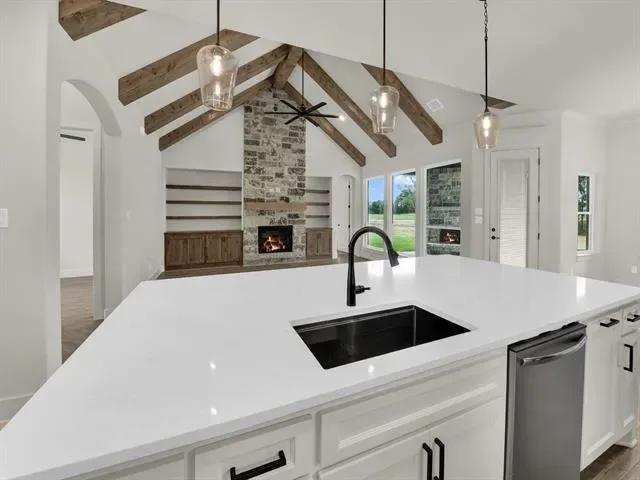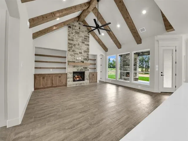 25 K CONCESSIONS! MOVE IN READY! LBK Homes has completed a beautiful 1 acre 4 bedroom, study and 3 car garage with 2.5 bath Traditional style home. The home has an inviting foyer that brings out the spacious family room filled with excellent cross beams and craftsmanship throughout. The kitchen is accompanied with an enormous quartz island in the center, microwave, all stainless steel and lg over sized cabinets with upper and lower cabinet lighting. The Master ste has a large walk in closet a separate tub and a separate shower and vanities. Perimeter wall foaming for efficiency. Underground utilities with AT& T Fiber. Elementary School just outside the neighborhood. Home is now 100 % complete and is ready for move in!