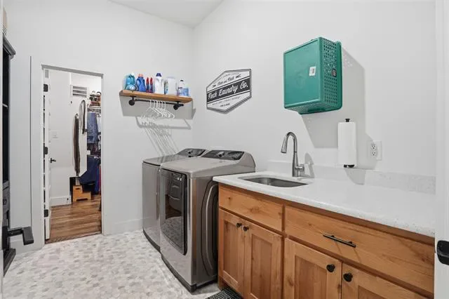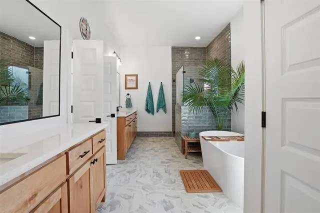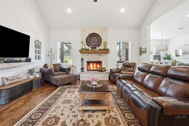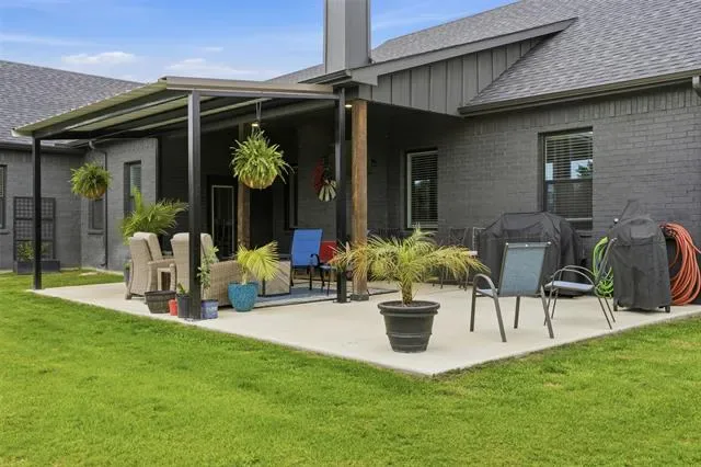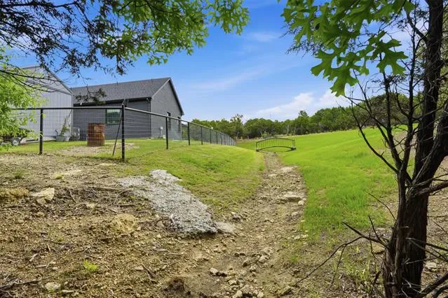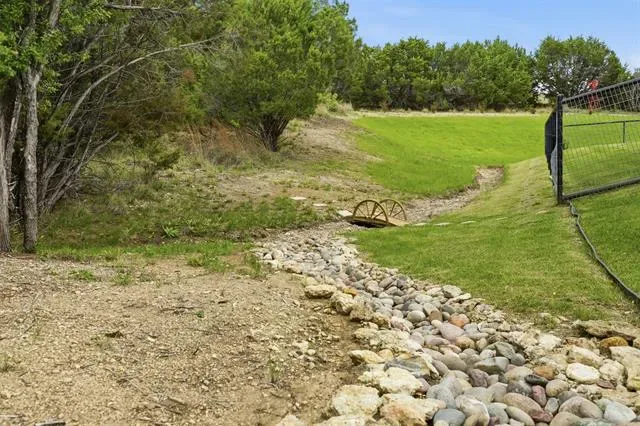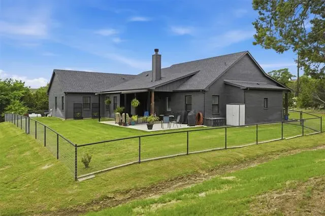 Welcome to this farmhouse-style home featuring an expansive front porch &' manicured lawn within Peaster ISD. Like new—but better, this turnkey property includes costly extras &' thoughtful touches that make it truly move-in ready. Inside, you’ll find real hardwood floors, a wood-burning fireplace, &' extensive custom finishes throughout. Upon entering the large foyer, French doors lead to a dedicated office that could easily be a fourth bedroom. The living room features a cathedral ceiling &' a floor-to-ceiling stone fireplace, opening directly into the kitchen for a seamless flow. The chef’s kitchen is equipped with an expansive quartz island, double oven, gas cooktop, &' massive walk-in pantry. The primary suite serves as a true sanctuary, featuring a spa-like ensuite w separate dual vanities &' soaking tub. A large walk-in closet offers convenient dual access from both the master bathroom &' the oversized utility room. Secondary bedrooms are located on the opposite side of the home &' share a Jack &' Jill bathroom, w the third bathroom conveniently located off the mudroom &' garage. Outdoor improvements include a shop, pipe fencing, &' an expanded covered patio. Fenced backyard overlooks a seasonal creek with a custom bridge leading up a grassy hill to cleared trails &' fire pit. The property offers privacy with a mature tree line that includes flat areas behind the trees, &' if cleared, ample space to build a large shop or barn if desired. Exterior is show stopping w gorgeous landscaping, a sprinkler system, gutters, &' water well. Home also features a water softener system for more out of pocket savings. For energy efficiency, it’s fully spray-foam encapsulated, &' the roof is only one year old. For added convenience, playground, trampoline &' like new zero turn mower are negotiable. This one-of-a-kind property blends modern comfort, high-end finishes, &' scenic tranquility—a turnkey country retreat ready for you to call home.