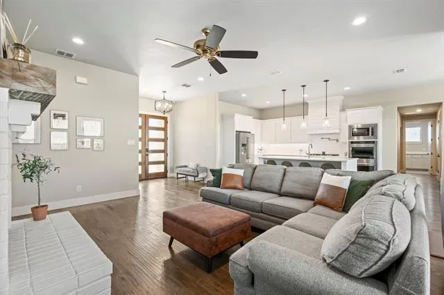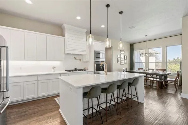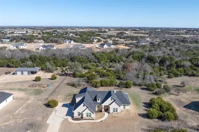 Back on Market! Previous buyer could not sell! Now is your chance to see this beautifully designed custom home with 3 car garage on just over 2 acres with room to build a shop! Outside of city Limits! Lower Taxes. Bring your chickens! 1 horse permitted per acre, 1 cow per acre. FOAM insulation makes utility bills a super low average monthly bill only $217 a month!! Private well, Oversized propane tank and aerobic septic make this a low maintenance and affordable lifestyle! Home is upgraded throughout with wood flooring in most areas accept 4 of the 5 bedrooms and wet areas which have upgraded tiles. Custom tiles, custom floating shelves, double ovens, pot filler, gas cook top, soft close drawers and cabinets in kitchen, under cabinet lighting, custom walk-in pantry with coffee bar and additional shelves and storage mud bench, additional cabinets in the utility room, custom lighting throughout with additional canned lighting added. True 1.5 story with everything down except oversized 5th bedroom and full bath or could be used for a game or media room. Large walk out attic for ease of storage is off of 5th bedroom. Primary Suite is split for privacy and boasts wood flooring, large walk-in closet, custom oversized shower with double heads, free standing tub and custom shelves for storage. Whole house filtration system stays with the home. Home is also prewired for a generator! Back yard immediately off extended patio has been turfed for clean play area, playset stays with property. Propane is plumbed in to operate, the cooktop, the gas starter on the fireplace, and the gas grill area at covered patio. Less than 15 minutes to HEB, COSTCO, and Downtown Weatherford! PEASTER ISD is a plus! Come make this clean and well-maintained home with a quiet beautiful lifestyle your own!