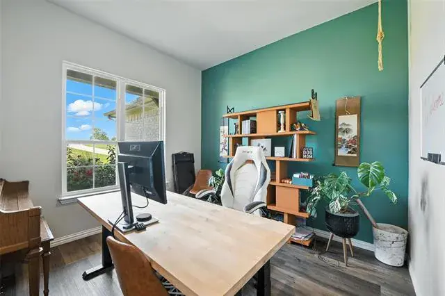 Very motivated seller! Imagine enjoying the breathtaking sunsets from this expansive backyard! This stunning move in ready home offers an inviting open floor plan, perfect for both everyday living and entertaining. The spacious living area is centered around a stylish TV wall and fireplace, creating a warm and welcoming focal point. The chef’s kitchen features gorgeous granite countertops, abundant cabinetry, and a convenient butler’s pantry as well as large pantry. The luxurious primary suite boasts a spa-like en suite bath and a generous walk-in closet. Well-sized secondary bedrooms are filled with natural light and are split from the primary bedroom, while a large dedicated office provides the ideal space for working from home. Step outside to a beautifully sized fenced backyard with a covered patio — the perfect spot to relax and enjoy the outdoors and the beautiful sunrise and sunsets. This beautiful is situated on a 1 acre lot in a beautiful subdivision!