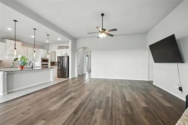 Very motivated seller! Imagine enjoying the breathtaking sunsets from this expansive backyard! This stunning move in ready home offers an inviting open floor plan, perfect for both everyday living and entertaining. The spacious living area is centered around a stylish TV wall and fireplace, creating a warm and welcoming focal point. The chef’s kitchen features gorgeous granite countertops, abundant cabinetry, and a convenient butler’s pantry as well as large pantry. The luxurious primary suite boasts a spa-like en suite bath and a generous walk-in closet. Well-sized secondary bedrooms are filled with natural light and are split from the primary bedroom, while a large dedicated office provides the ideal space for working from home. Step outside to a beautifully sized fenced backyard with a covered patio — the perfect spot to relax and enjoy the outdoors and the beautiful sunrise and sunsets. This beautiful is situated on a 1 acre lot in a beautiful subdivision!