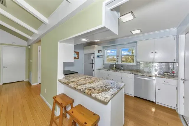 Perched on a hilltop in a quiet cul-de-sac, this stunning mid-century modern home offers breathtaking sunset views and exceptional privacy. The serene backyard is a true retreat, featuring an in-ground saltwater pool and a storage shed, perfect for relaxing or entertaining.