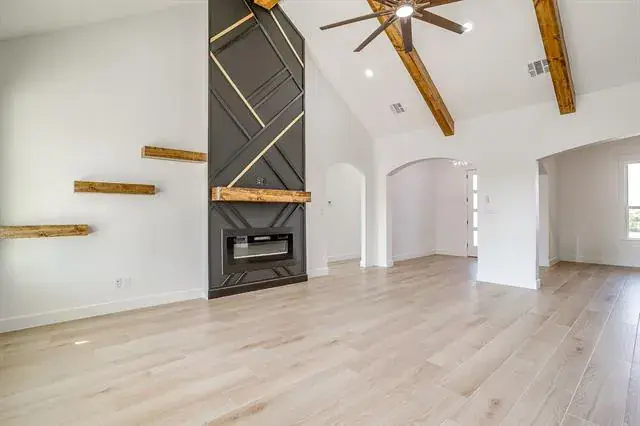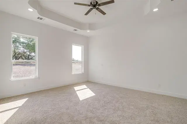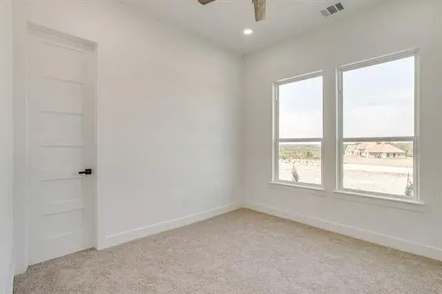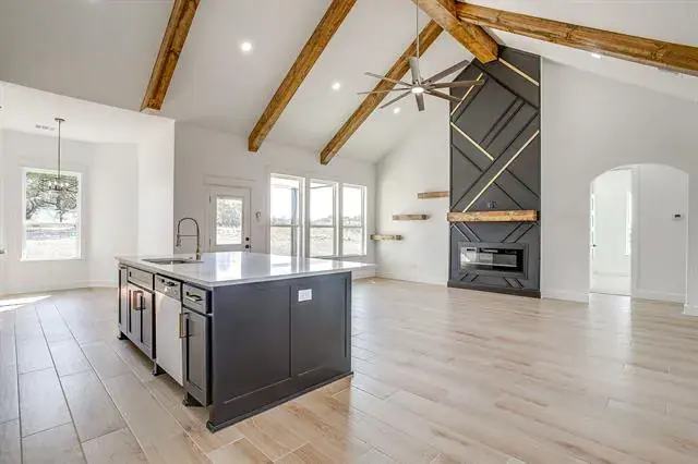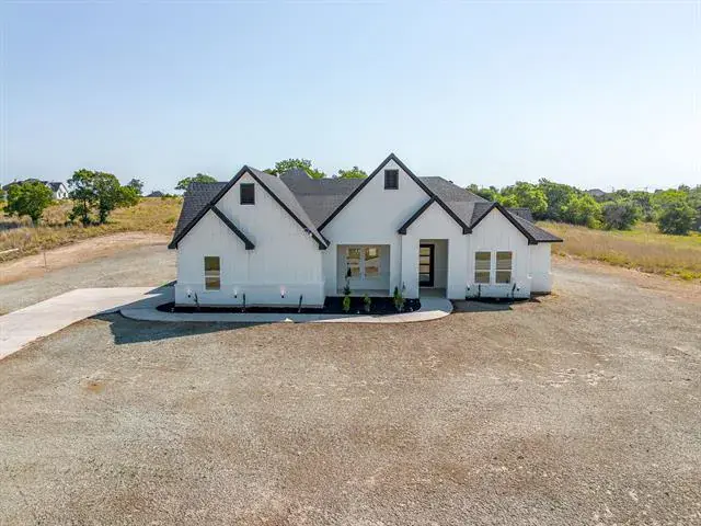 Escape to the Country in Weatherford, Texas! Thinking about making the move to peaceful country living? Come see this stunning brand-new construction on over 2 acres just outside the city limits in a neighborhood of beautiful new homes. This home features vaulted ceilings, an open-concept layout, a formal dining room, a cozy breakfast area and a big and beautiful master bath with heated flooring. With 4 bedrooms, 2.5 baths, elegant tile flooring, it’s designed for comfort and style. The exterior is painted crisp white with a striking black roof. Enjoy your own private water well, a spacious back patio, and the charm of deer roaming nearby. Plus, there’s an electric fireplace decorated all the way to the ceiling and a dog bath for your friendly pup! Experience the perfect blend of country tranquility and modern living—schedule your tour today!