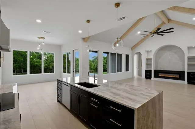Built-in Features, Built-in Wine Cooler, Chandelier, Decorative Lighting, Eat-in Kitchen, Flat Screen Wiring, High Speed Internet Available, Kitchen Island, Open Floorplan, Pantry, Vaulted Ceiling(s), Walk- In Closet(s)