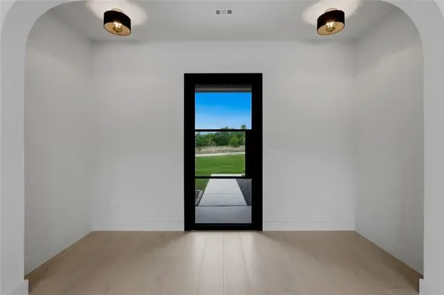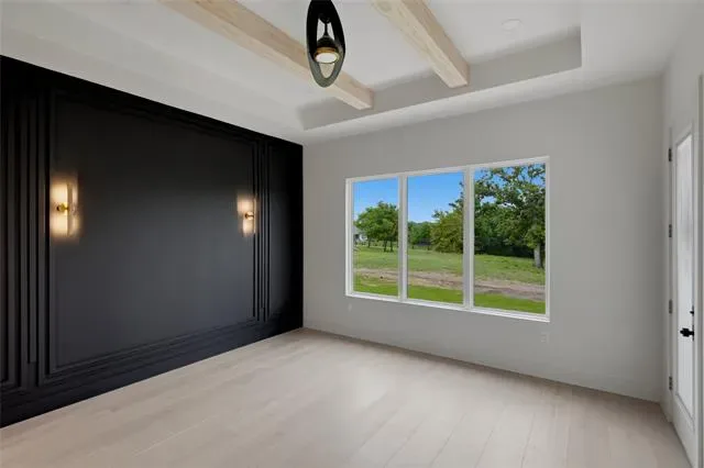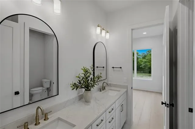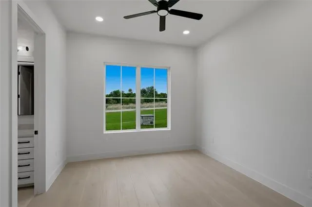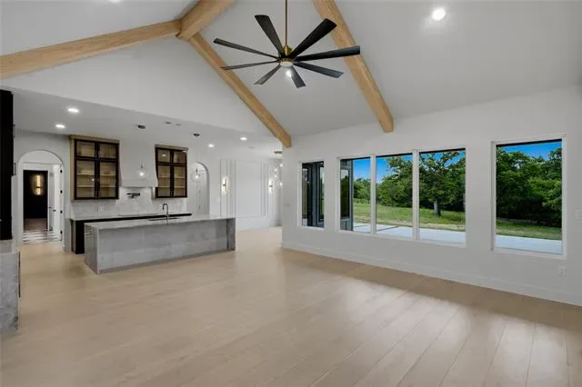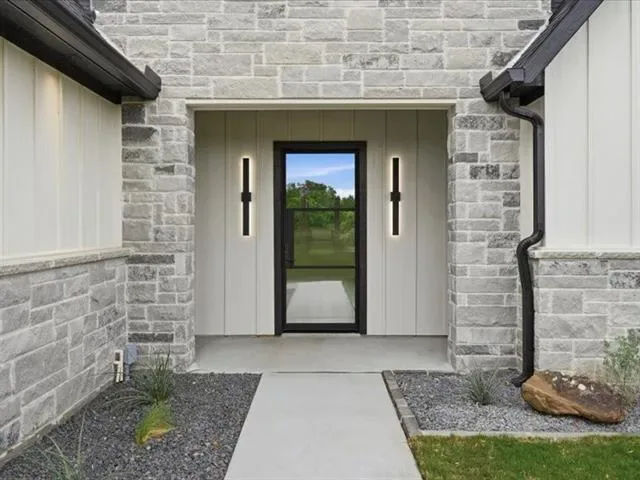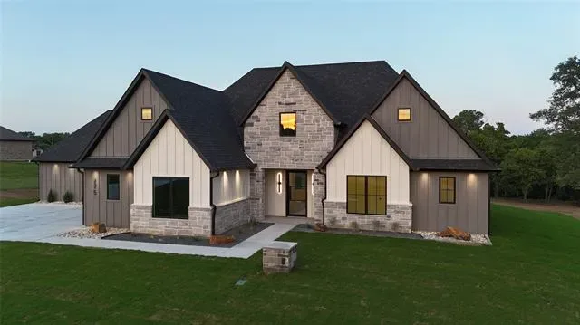 Experience elevated living in this brand-new custom home by Oakley Homes, designed with high-end finishes and exceptional attention to detail. Featuring spray foam insulation, soaring 10-foot ceilings, oversized windows and doors, and a bright open-concept layout, this home blends style and functionality. The kitchen is a true showstopper with Taj Mahal quartzite countertops, a dramatic waterfall island, induction cooktop, wine bar, and a spacious walk-in pantry with custom cabinetry. The primary suite offers a private retreat with a spa-inspired bath, including a freestanding soaking tub with views of the backyard and a walk-in shower with a rain head and three additional spray systems. A versatile bonus room includes its own dedicated mini-split system and a sleek glass overhead door—perfect for a home gym, game room, or media space. Situated on a beautiful 2-acre lot in Saddle Crest Estates, this property offers no HOA, no city taxes, and no city water. Surrounded by mature trees, gorgeous landscaping, and a peaceful creek, it delivers the perfect blend of modern luxury and serene country living.