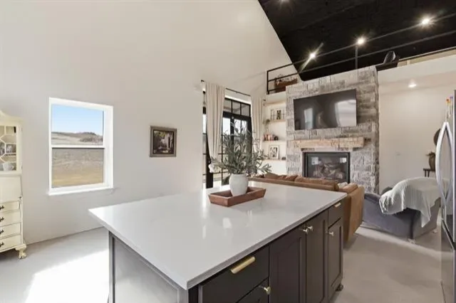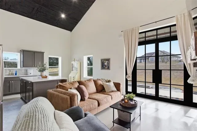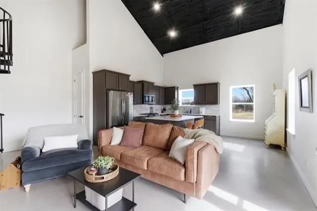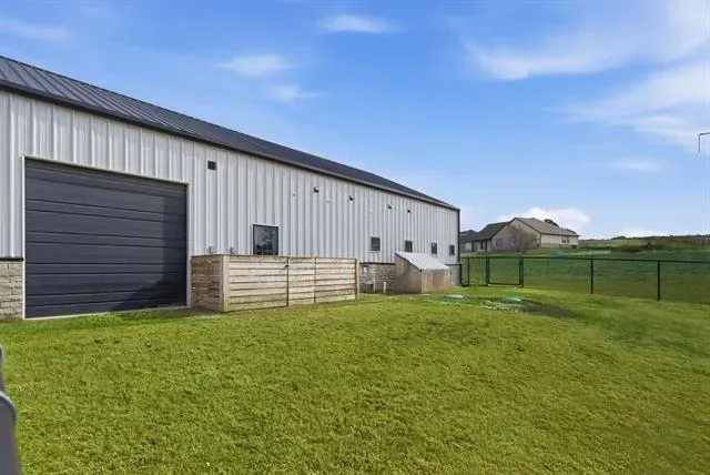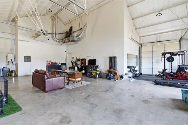 Discover contemporary living in this 3 bed, 2 bath barndominium on 4± acres, featuring a serene 1-acre pond. The sleek living area offers comfort and style, adjacent to a modern kitchen. The master suite boasts an elegant en-suite bathroom with an awesome walk in closet featuring a stackable washer and dryer. A second bedroom and bathroom downstairs, as well as, an upstairs flex room that could be used as a bedroom, office or an additional living area give a great space for kids or guests. Additionally, enjoy the convenience of a 1200 square foot fully climate-controlled shop space with its own AC unit. The property is serviced by a water well and features an irrigation system, enhancing its lush surroundings and ensuring efficient maintenance. Embrace modern comforts and tranquil countryside living in this unique retreat.
