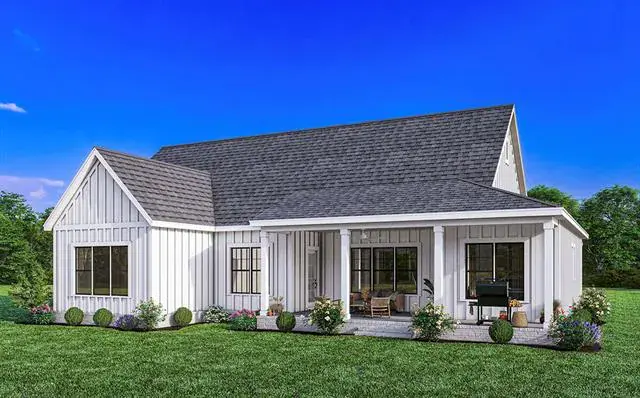This beautifully crafted proposed Thatcher plan showcases a spacious, open-concept design, this stunning residence features 3 beds & 2 baths & a 2-car garage. Take advantage of NO PAYMENTS while you build with Zeal Home Builders! This plan is fully equipped with all the features one would expect from a custom home, including split bedrooms, spacious porches, custom cabinetry & closets, Delta faucets, a concrete driveway, decorative mirrors, wall-mounted TV outlets, & hardline Ethernet ports. The builder has invested in high-quality details such as spray foam insulated walls & more. The two-car garage is thoughtfully designed with can lighting, a smart MyQ side-mount garage motor, & an auto-lock system for added security. Plus, you can add convenient Costco door in the pantry allows for easy unloading of groceries directly from the garage. As you enter the open concept home you have a generous living area that leads to the dining & kitchen. Luxury vinyl plank floors in the common areas with carpet in the bedrooms & accent tile in baths & laundry. The Kitchen has abundant storage, including an oversized hidden pantry, granite or quartz countertops, an eat-at-island with custom painted cabinetry, stain grade available for upgrade. The living room boasts a vaulted ceiling, while the master suite features a vaulted ceiling, stylish barn door leading to a luxurious en-suite with dual sinks, a separate shower, & a soaking tub. Enjoy the tranquility of privacy away from the city while still being conveniently close to amenities. Estimated completion 5-7 months from start to finish. With a wide range of options at your disposal, you can tailor it to suit your unique needs. Home has 3-phase inspected & a comes with 1-2-10 3rd Party Warranty for your peace of mind. Images depicting a model home. Features & finishes are subject to change. Txt keyword ZHB56 to 88000 for Feature list & more! Directions & lot map at zhb.homes