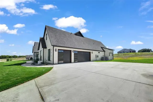 From the moment you arrive, the stunning curb appeal sets the tone for what awaits inside. Set on 2.01 acres in prestigious Santana Ridge Estates within Brock ISD, this 3,915 SF residence blends timeless craftsmanship with modern sophistication. Step inside to a breathtaking open-concept layout anchored by a chef’s kitchen with commercial-grade appliances, a striking drop-edge Taj Mahal quartzite island &' surrounding counters, wet bar &' walk-in pantry. Inset oak cabinetry throughout provides a seamless blend of elevated design &' functionality, while hand-scraped hardwood floors &' designer fixtures enhance each room. The centrally located dining area wows with overhead box beams, brick pillar accents &' doors opening to the expansive patio. The living room’s floating gas fireplace framed by arched built-ins adds a touch of French-inspired charm &' warmth. An inviting office showcases French barn doors &' a bold accent wall. With 5 bedrooms, this home offers exceptional flexibility. The primary suite is a true sanctuary, featuring a spa-inspired ensuite with a massive walk-through dual-head shower, bold black soaking tub &' a focal-point tile wall with chandelier. A convenient pass-thru leads to the spacious laundry room with utility sink, abundant storage &' drip-dry area. A 2nd primary suite offers ideal guest space. Three additional bedrooms are thoughtfully arranged, including a large flex suite or 5th BR with double doors to back patio &' ensuite bath. Upstairs, a huge bonus room with full bath &' storage closet creates the perfect retreat for play or work. High ceilings, expansive windows &' an open layout flood the home with natural light, showcasing the incredible craftsmanship throughout. Horses permitted—private septic, ATT fiber, buried utilities &' quick access to I-20. Just 10 minutes from Downtown Weatherford, this isn’t just a home—luxury living at its finest.
