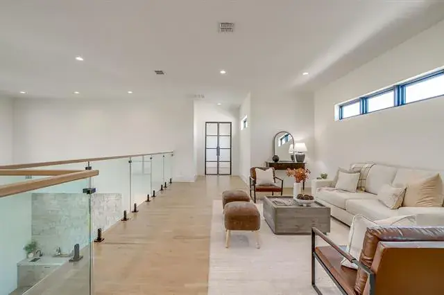 PREPARE TO BE CAPTIVATED! This high class architectural standout is the definition of bold, refined luxury and exceptional sophistication! Nestled in the sought-after Santorini gated community, you will find this one-of-a-kind home ready to dominate the first impression. As you drive through the Porte-Cochere–style design and half circle driveway, you will walk through a striking 6×8 metal and glass pivot door. Instantly welcome by a warm stone accent wall which opens to an airy, open-concept layout where a glass staircase ascends to a loft overlooking the living area. What a spectacular living room here with floor to ceiling Venetian-plastered fireplace and 24 foot ceilings with a full custom bar with additional sink and accent stone wall. The slated design kitchen is equipped with Taj Mahal countertops with a dropped edge finish, top of the line built-in SKS appliances, custom cabinetry including spice rack and utensils drawers, pot filler above gas cooktop, under cabinet lighting and an unbelievable pantry with custom wine bar. The dreamy primary suite offers an unbelievable cascading waterfall shower in what feels like a five-star resort style spa with 12 foot seamless glass walls. Each bedroom offers its own ensuite bath and impressively spacious closets, while the upper level features a flexible living space and a game room equipped with its own bar—perfect for entertaining. Home office with built-in''s and laundry room with dog wash. Enjoy beautiful wide-open views off the back patio with a glass of wine and cozy up to the wood-burning fireplace. This truly is a stunning design, packed with every luxury feature and is ready for YOU to call this place home for good!