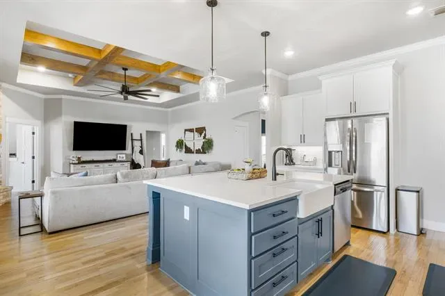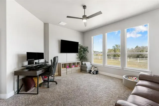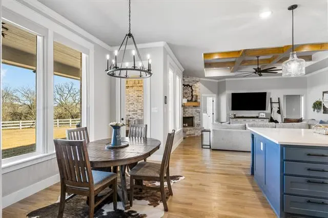Situated at the end of a quiet cul-de-sac on two fenced acres, this beautifully maintained 4-bedroom, 2 full and 1 half-bath home offers the space, privacy, and functionality today’s buyers are actively seeking. With two generous living areas and two dining spaces, the layout is designed for both everyday comfort and effortless entertaining. Natural light fills the home, creating a warm and inviting atmosphere throughout. The kitchen flows seamlessly into the main living space, making it ideal for gathering with family or hosting guests. The primary suite provides a peaceful retreat, while the additional bedrooms offer flexibility for guests, a home office, or hobby space. Outside, enjoy wide-open Texas skies from your private two-acre setting. The fully fenced acreage provides room for pets, recreation, or simply breathing space that is hard to find this close to Weatherford conveniences. A three-car garage plus an extended driveway ensures ample parking for vehicles, trailers, or visiting guests.