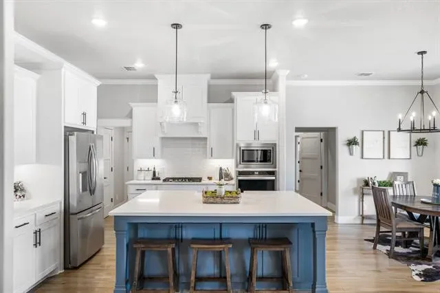 Situated at the end of a quiet cul-de-sac on two fenced acres, this beautifully maintained 4-bedroom, 2 full and 1 half-bath home offers the space, privacy, and functionality today’s buyers are actively seeking. With two generous living areas and two dining spaces, the layout is designed for both everyday comfort and effortless entertaining. Natural light fills the home, creating a warm and inviting atmosphere throughout. The kitchen flows seamlessly into the main living space, making it ideal for gathering with family or hosting guests. The primary suite provides a peaceful retreat, while the additional bedrooms offer flexibility for guests, a home office, or hobby space. Outside, enjoy wide-open Texas skies from your private two-acre setting. The fully fenced acreage provides room for pets, recreation, or simply breathing space that is hard to find this close to Weatherford conveniences. A three-car garage plus an extended driveway ensures ample parking for vehicles, trailers, or visiting guests.