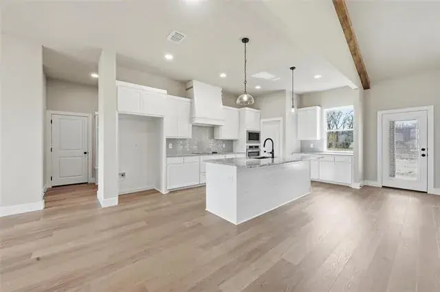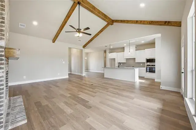Open concept floor plan. 4 bedroom or 3 plus study with 2.5 baths, and an oversized 3 car garage with 8′ garage doors. Wood burning fireplace with vaulted ceiling with beams in family room. Split bedrooms, utility room access to master. Silver Sage Farms is a charming community nestled in the heart of Parker County. Fiber Optic internet is included until 2029 at no charge. Shops welcome, up to one horse and 6 chickens. Up to $10k seller incentive – see home for details