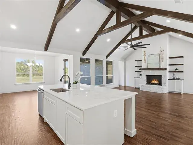 READY for move in! Discover this stunning custom home offering 2,796 sq. ft. of thoughtfully designed living space, perfectly situated on 1.536 acres. From the moment you step inside, you’ll appreciate the craftsmanship and attention to detail, beginning with the real hardwood floors, neutral colors, and decorator touches that create a warm, inviting atmosphere throughout. The heart of the home is the gourmet kitchen, complete with an expansive island, abundant counter space, and a seamless connection to the open living and dining areas—ideal for both everyday living and entertaining. Soaring vaulted ceilings and large windows fill the home with natural light, enhancing its open and airy feel. This home offers three spacious bedrooms, including a luxurious primary suite designed for relaxation. The primary retreat features a spa-like bath with a soaking tub, a stand-alone shower, and a huge walk-in closet conveniently connected to the oversized laundry room. The flexible floor plan also includes a private study and a second living area that could serve as a fourth bedroom, game room, or media room, making it easy to adapt the space to your needs. With three full bathrooms and a three-car garage, functionality meets style at every turn. Step outside and enjoy the peace and privacy of your oversized lot with a private tree-lined backyard, offering endless possibilities for outdoor living, gardening, or simply unwinding. Attractively priced, this home is the perfect blend of modern comfort, timeless design, and versatile living. Don’t miss your chance to make this exceptional property yours! $10,000 TOWARDS CLOSING COSTS OR FINANCING!!
