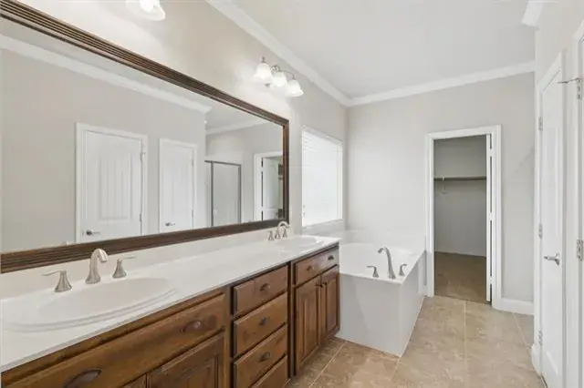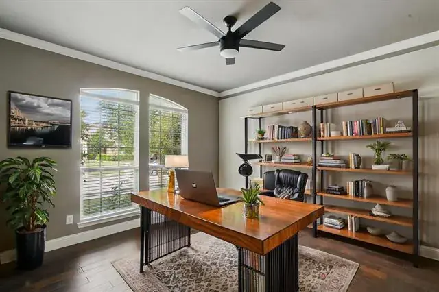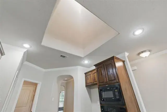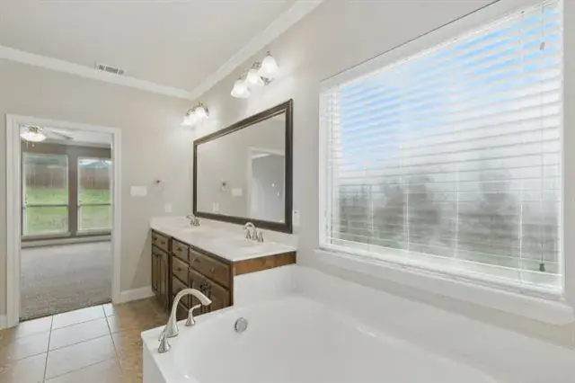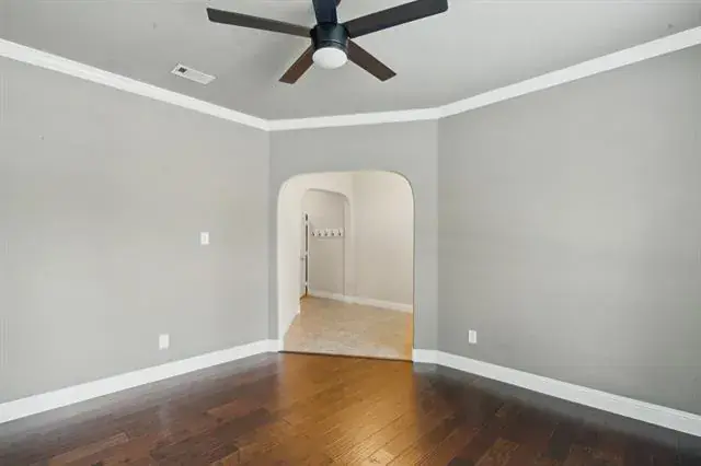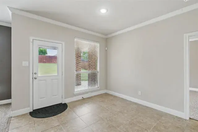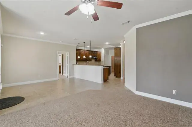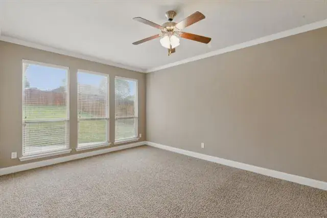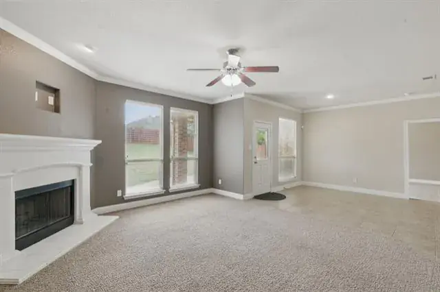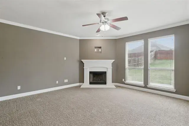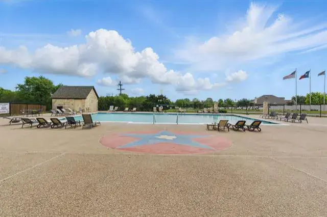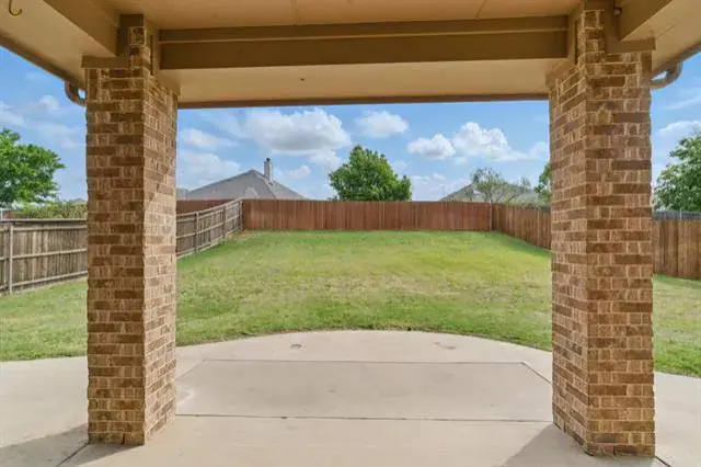 3 car garage, 3 bedrooms, 2 bathrooms, plus an additional office or bedroom. Large kitchen with island, granite counter tops, tile back splash, abundance of cabinet space, built-in oven, cook-top stove and microwave oven are the center of this open floor plan home. Enter this home through arched entryways, porcelain tile floors, crown molding throughout and a decorative corner fireplace in the great room with wired access for TV and internet services, plus window blinds throughout! Bedrooms are wired for wall mounted TV’s and each include ceiling fans. Separate vanities in the master bathroom, large garden tub, a separate shower and a large walk-in closet. Relax under a covered back patio with a wired ceiling fan and a large, fenced backyard with room to barbecue and entertain. There is also ample room for storage and shop space for Dad in the 3-car garage with remote openers. This is a family’s dream come true with its location to shopping, restaurants, entertainment, and major highways as well as a great location for quick access to Fort Worth or Lockheed Martin. Enjoy the large community pool area with a separate pool for the kids and large deck for sunbathing. Away from the Ric Williamson Highway for quieter enjoyment of a relaxing evening. Fresh paint in this cozy home makes it a home ready for move-in!