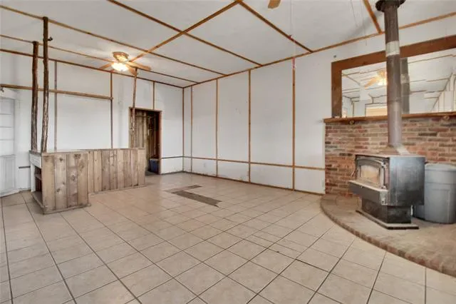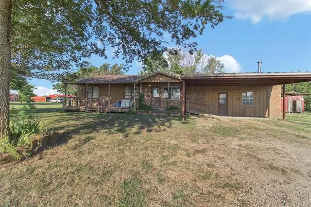 Incredible 2 acre property and home. Home is a 3 bed 2 full bath with 2 living areas, one is very big. The home has some updates and is waiting for your personal touches. The kitchen and front living room is open concept and the home flows to the bigger family room where there is a wood burning stove accompanied by a separate bar area for serving gatherings and enjoying the company of family and friends. The 2 acres has a couple workshops storages and a storm cellar. The plot is partially fenced with a few nice trees to enjoy while sitting on the big front porch. Most plots of land on this street are half of what you get with this home.