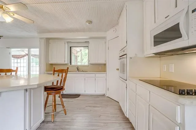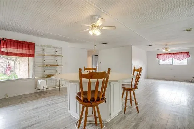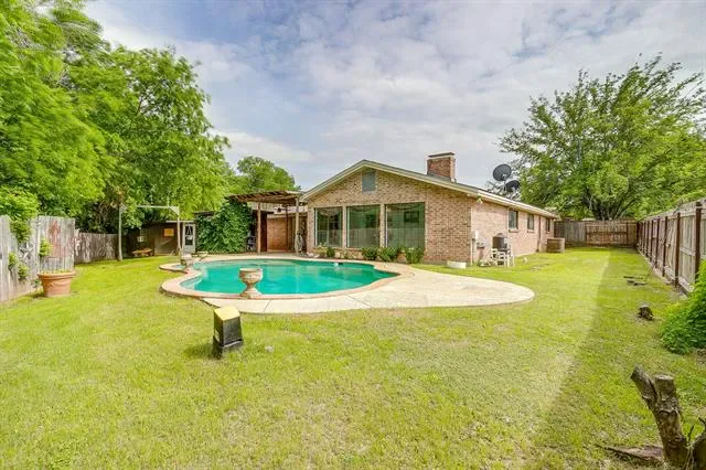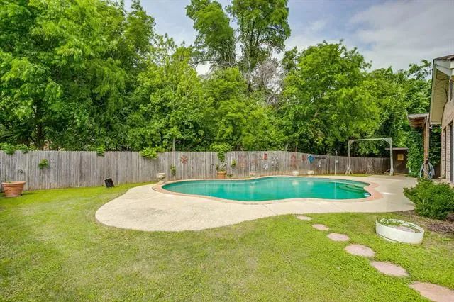 Country feel with walk to dinner convenience! Step into this inviting brick home nestled on a peaceful cul de sac in the heart of charming downtown Weatherford! This 3 bedroom 2 bath home backs up to a huge creek for ultimate privacy with only one neighbor! The spacious kitchen feature a huge unique kitchen island that’s perfect for entertaining. The garage was converted to a flex room with lots of room for bunks, game room, you name it! The lovely window filled garden room overlooks the sparkling inground gunite pool and there’s a charming gazebo patio ideal for morning coffee or evening relaxation. This gem is ready for your personal touch, don’t miss this rare find!