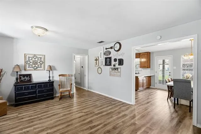 Tucked away on over 1.22 acres in Weatherford ISD, this inviting property offers the kind of peace and privacy that is hard to find. Located in a quiet neighborhood with a one-way-in, one-way-out entrance, the setting feels secluded while still being convenient. Surrounded by mature trees, including a beautiful row of pecan trees, the property has a warm, established feel from the moment you arrive. Enjoy mornings on the large front porch and the added benefit of a private well. Inside, the home features premium floating laminate flooring throughout, giving the space a fresh, updated look. With its serene surroundings, thoughtful updates, and room to breathe, this property is a rare opportunity to enjoy country-style living with the convenience of Weatherford nearby.