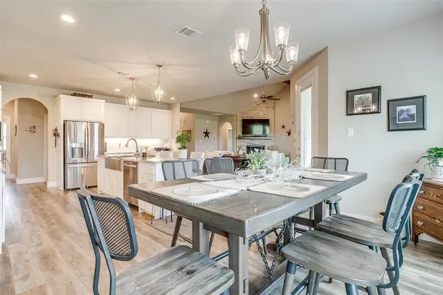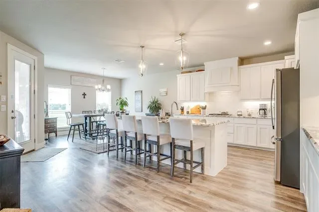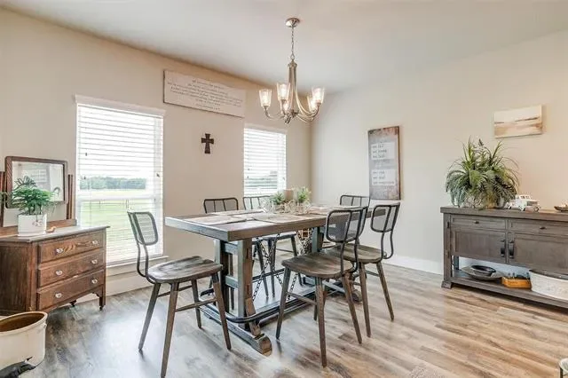 Welcome to your dream home, perfectly situated on a pristine 2-acre lot—ideal for soaking in the serenity of country living. At the front of the house there is a spacious flex room that’s perfect as a home office, playroom, or extra living area. There is beautiful wood-look flooring throughout—no carpet anywhere—offering both style and low-maintenance living. The inviting living room boasts soaring vaulted ceilings with striking exposed beams and a stunning stone fireplace that creates the perfect cozy focal point. The open-concept kitchen is a host’s dream, complete with a large center island, dedicated coffee bar, walk-in pantry, and generous cabinet space for all your storage needs. Tucked away for privacy, the primary suite offers a peaceful retreat. The spa-like ensuite bath includes dual vanities, a luxurious soaking tub, and a spacious walk-in closet. This home is loaded with thoughtful upgrades including a water softener and filtration system, in-ground propane tank, and custom blinds. Enjoy peaceful mornings and tranquil evenings on the covered back patio, where you can take in the quiet countryside. Don’t miss your chance to experience the best of country living in this move-in ready home!
