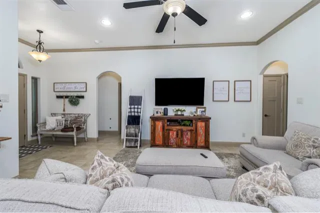 Welcome to this beautifully maintained 3 bedroom, 2 bath home in the heart of Weatherford, offering comfort, style, and an unbeatable location. Step inside to an inviting open-concept layout featuring a spacious living area with high ceilings, crown molding, recessed lighting, and abundant natural light, perfect for both everyday living and entertaining.