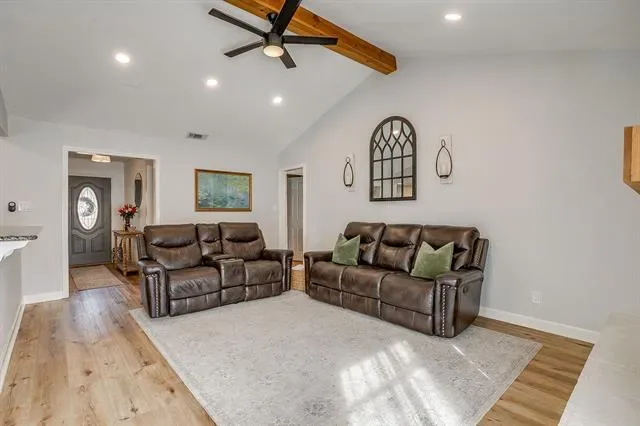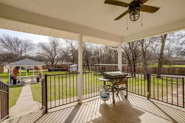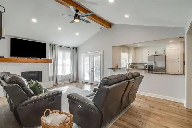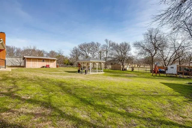 Welcome to your private slice of Texas country living! This beautifully updated 3-bedroom, 2-bath home sits on a spacious 1-acre lot, offering the perfect blend of comfort, style, and functionality. Step inside to an open-concept layout featuring a fully updated kitchen with granite countertops, and modern finishes, all flowing seamlessly into the living area—ideal for entertaining. Updated can lighting and luxury vinyl flooring run throughout the home, creating a bright and cohesive feel. The inviting living room features a cozy wood-burning fireplace and French doors that lead to the covered patio, perfect for relaxing or hosting gatherings. The primary suite offers a beautifully renovated bathroom with a walk-in shower, double sinks with undermount basins, updated cabinetry, and stylish fixtures. The secondary bathroom has also been thoughtfully updated with double sinks, modern lighting, and updated plumbing fixtures. Outside, you’ll find everything you need for enjoying country living, including a covered patio, additional covered parking, gazebo, chicken coop, and storage building. The garage features epoxy flooring for a clean and polished look.