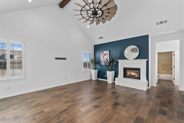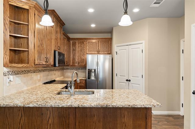 REDUCED PRICE! Enjoy effortless living in this beautifully appointed one-story brick and stone townhouse, ideally positioned on a prime corner lot in the sought-after Villas of Heritage Pointe. From the moment you step inside, you’ll appreciate the light-filled, open layout designed for both comfort and style. The inviting living area showcases vaulted ceilings, an exposed beam, a cozy fireplace, and plantation shutters, creating a warm focal point that flows seamlessly into the kitchen and dining space. The kitchen is perfectly suited for entertaining with granite countertops, stainless steel appliances, and a breakfast bar that keeps everyone connected. This smart floor plan offers two bedrooms and two full baths, including a serene primary suite with vaulted ceilings, a private en suite, and a spacious walk-in closet. Step outside to your covered, private patio, an ideal setting for morning coffee, evening gatherings, or relaxed outdoor dining, all framed by a privacy fence. For enhanced energy efficiency, a new roof was recently installed. Residents enjoy low-maintenance living surrounded by manicured grounds and scenic walking paths, with the added bonus of being just minutes from Weatherford’s historic courthouse, vibrant downtown square, dining, and shopping. Homes like this don’t come along often—schedule your private tour today and discover how easy and elegant townhome living can be.