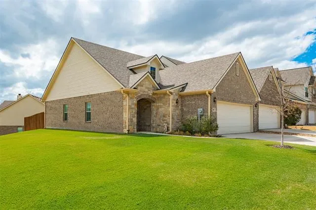 REDUCED PRICE! Enjoy effortless living in this beautifully appointed one-story brick and stone townhouse, ideally positioned on a prime corner lot in the sought-after Villas of Heritage Pointe. From the moment you step inside, you’ll appreciate the light-filled, open layout designed for both comfort and style. The inviting living area showcases vaulted ceilings, an exposed beam, a cozy fireplace, and plantation shutters, creating a warm focal point that flows seamlessly into the kitchen and dining space. The kitchen is perfectly suited for entertaining with granite countertops, stainless steel appliances, and a breakfast bar that keeps everyone connected. This smart floor plan offers two bedrooms and two full baths, including a serene primary suite with vaulted ceilings, a private en suite, and a spacious walk-in closet. Step outside to your covered, private patio, an ideal setting for morning coffee, evening gatherings, or relaxed outdoor dining, all framed by a privacy fence. For enhanced energy efficiency, a new roof was recently installed. Residents enjoy low-maintenance living surrounded by manicured grounds and scenic walking paths, with the added bonus of being just minutes from Weatherford’s historic courthouse, vibrant downtown square, dining, and shopping. Homes like this don’t come along often—schedule your private tour today and discover how easy and elegant townhome living can be.