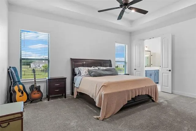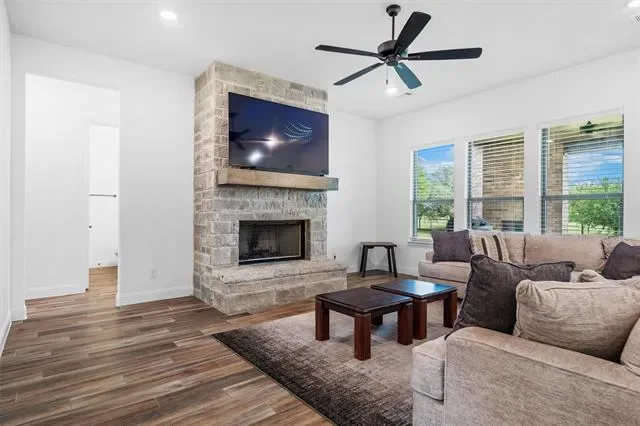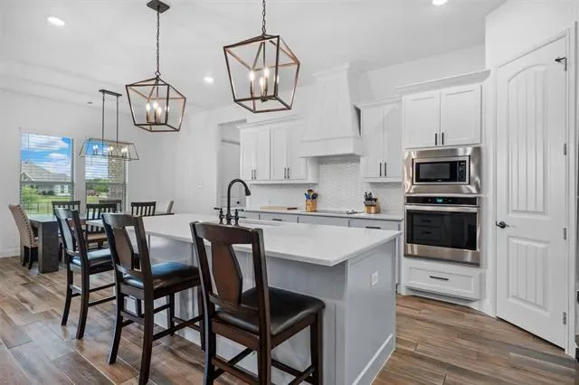If you’ve been searching for space, privacy, and a home that actually feels like an escape, this is it. Set on 1.16 acres in the sought-after Vintage Oaks community of Weatherford, 341 Oak Meadow Lane delivers that rare balance of peaceful country living with everyday convenience just minutes away. Step inside and you’re immediately met with natural light, soaring ceilings, and an open layout designed for both connection and comfort. The living room draws you in with a striking floor-to-ceiling stone fireplace, creating the kind of space that just feels like home. The kitchen is built for real life and entertaining alike, featuring a large island with seating, quartz countertops, stainless steel appliances, and a walk-in pantry that actually delivers on storage. The primary suite is tucked away for privacy, offering a true retreat with a spa-like bath, soaking tub, separate shower, dual vanities, and a spacious walk-in closet. Secondary bedrooms are generously sized, giving everyone their own space, while the dedicated office and upstairs bonus room add flexibility for work, play, or hosting. Out back is where this home really shines. Wide open skies, a fully fenced yard with custom pipe fencing, and a covered patio with an outdoor fireplace set the tone for slow evenings, weekend gatherings, and everything in between. With a 3-car garage, energy-efficient construction, and located in Azle ISD, this home checks all the boxes while still giving you something that’s harder to find: a place that actually feels different the moment you pull up.