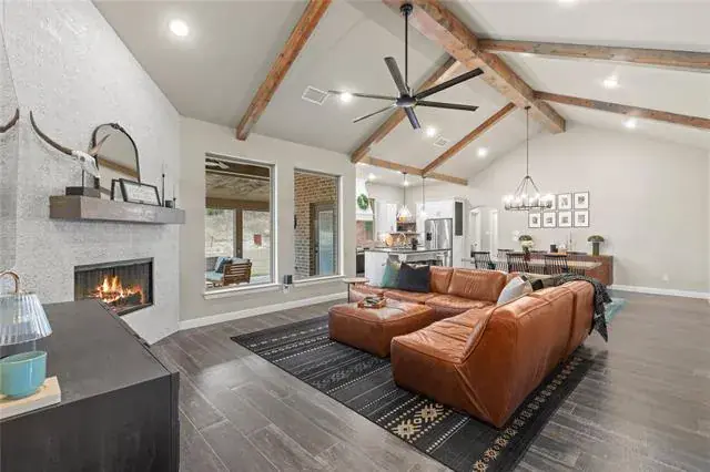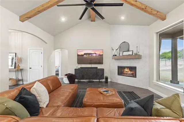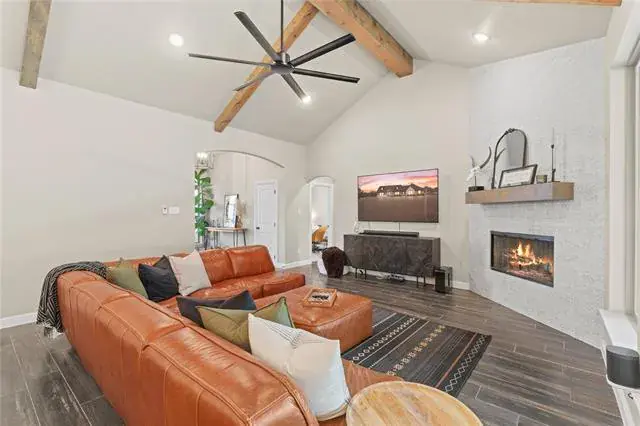 Spacious and well-appointed 3 bedroom, 2.5 bath home situated on a lot that is over 1 acre in size. This home offers room to live, work, and relax. The open concept layout features abundant natural light, modern fixtures, and a warm wood burning fireplace. The primary suite is a true retreat, highlighted by a beautifully finished tile, stone-style walk-in shower. An additional office provides flexible space and could easily serve as a fourth bedroom. A two-car garage includes extra room ideal for storage or hobby area. Enjoy the peace of great neighbors and the convenience of an invisible dog fence already buried around the property perimeter. With modern furnishings, thoughtful design, and move-in-ready condition, this home is ready for you.