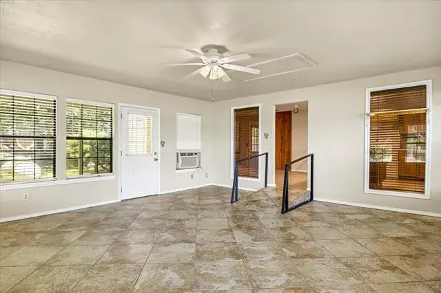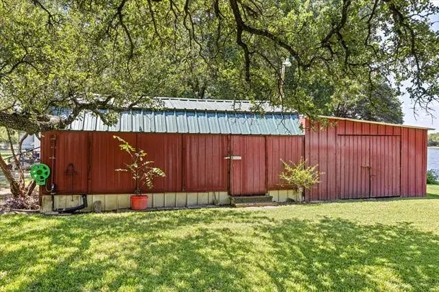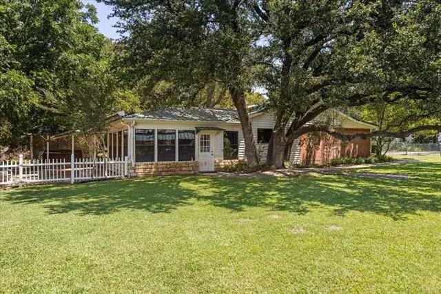 This 2B 1B property presents an excellent opportunity for a weekend retreat, retirement or primary residence on the lake. It includes a private water well with a filtration system. Situated amidst mature trees, the home occupies two lots, featuring a manicured lawn, water features with Koi pond, a sprinkler system, and a two-car garage. The large sunroom provides a great space for entertaining, relaxing lake views and access to a lakeside stone patio, complete with a retractable awning and private hot tub. The kitchen boasts custom oak cabinets with a roll-away island and an instant hot water heater under the sink. The kitchen also includes a dining or den area with a propane fireplace. The four-piece bathroom features a therapeutic walk-in soaking tub with hydro massage, heat, and a rain shower as well as a separate shower. Additional amenities include a small workshop with electric, air conditioning and water. Garden shed is large enough for riding lawn mower and garden tools. The property is fenced and includes a stone retaining wall with 82 feet of water frontage, along with a two-car garage. Boat ramp is a short walk. Executor of Estate will consider all serious offers. The property is handicap accessible with a removable ramp in the kitchen. It is conveniently located 15 minutes from Weatherford, off of Tin Top, with the Brazos River boat launch just a 7-minute drive away.