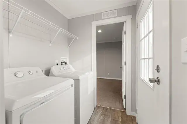 The first home features 4 bedrooms and 2 bathrooms, including a primary suite with its own en-suite bathroom, complete with a double vanity and dedicated closet. The kitchen is well equipped with a dishwasher, oven, stove, microwave, and pantry, providing plenty of storage and functionality for everyday use. The spacious layout throughout the home offers flexibility for families, guests, or shared living arrangements.