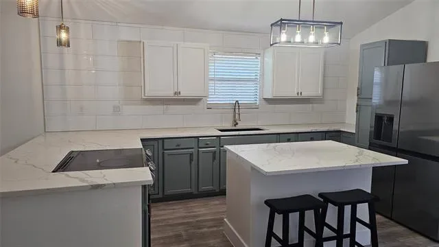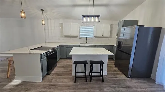 The kitchen shines with a spacious center island, ample prep space, and modern finishes that blend style with functionality. Every detail was chosen to create a clean, cohesive feel throughout the home.