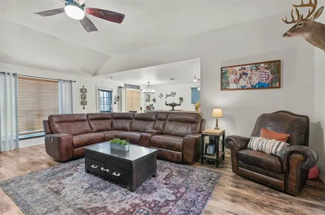 Everyday life is made simple with H-E-B, Costco, downtown Weatherford, and a variety of shopping, dining, and entertainment options just minutes away. Inside, the spacious open layout is designed for both daily living and entertaining. Gather around the brick, wood-burning fireplace on cool evenings or step outside to the spacious back deck—perfect for weekend barbecues, morning coffee, or relaxing sunsets. The privacy-fenced backyard provides a peaceful retreat and room to unwind, play, or entertain.