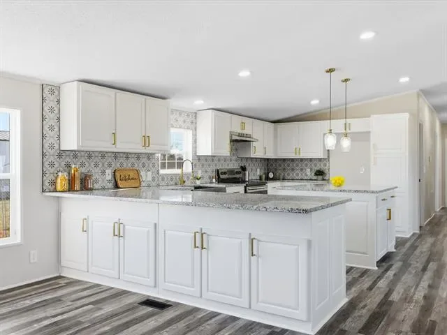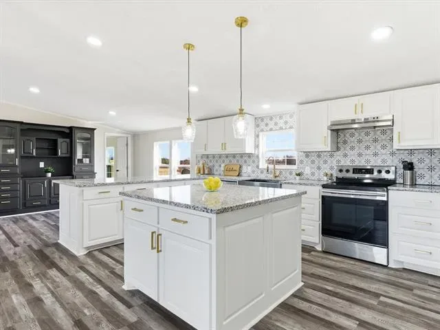 This spacious home features two living areas, offering flexibility for entertaining, relaxing, or multigenerational living. One living space is anchored by a cozy fireplace, creating the perfect spot to gather. The open kitchen is a true highlight with an oversized island, farmhouse sink, and ample workspace—ideal for cooking, hosting, or everyday life.