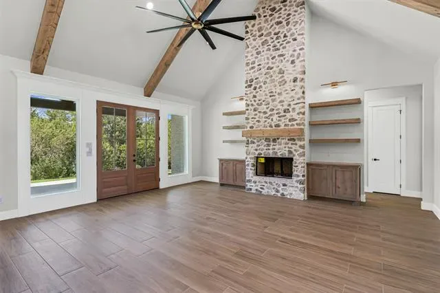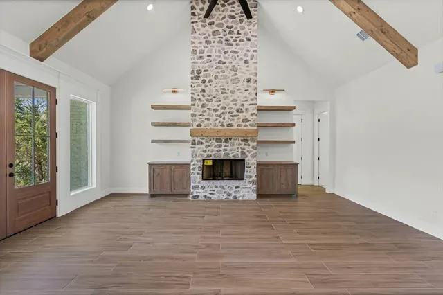This home offers seamless flow between the spacious living room, kitchen, and dining area. Clean architectural lines, soaring ceilings and expansive windows create a bright, open atmosphere from the moment you step inside. The heart of this home is a gourmet kitchen equipped with top of the line appliances, custom inset cabinetry, quartzite countertops with an oversized island, and a large hidden pantry with cabinetry, beverage refrigerator -ideal for gathering with family or entertaining guests. It also features an oversized cathedral patio, primary suite with its own fireplace along with large stone fireplace in the main living area, custom dog wash. No HOA in this development, deed restrictions allow a guest home up to 2000 sq feet in addition to a metal building.*Builder is offering 10,000 in concessions with a full price offer* Ask agent about additional credits when using preferred lender*