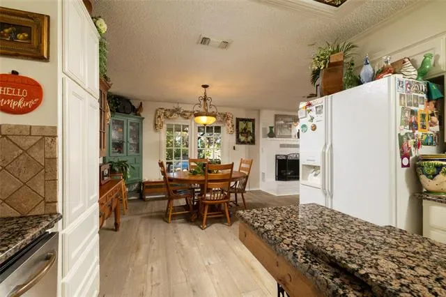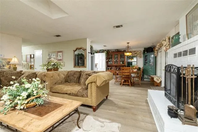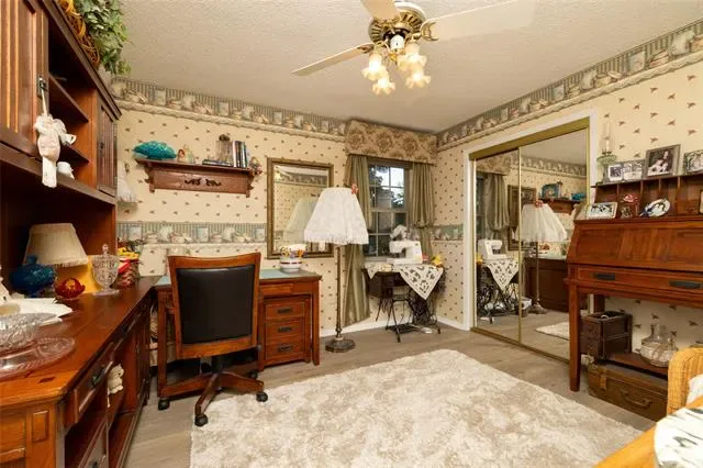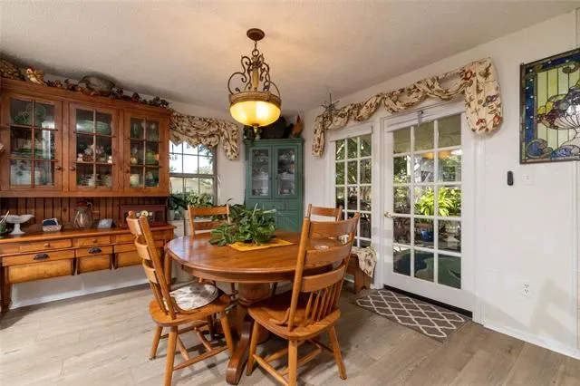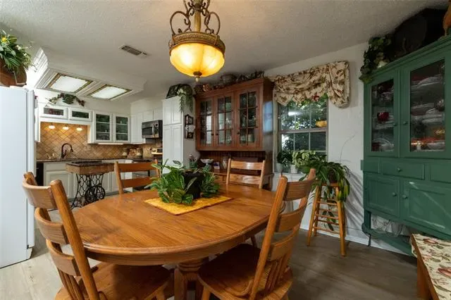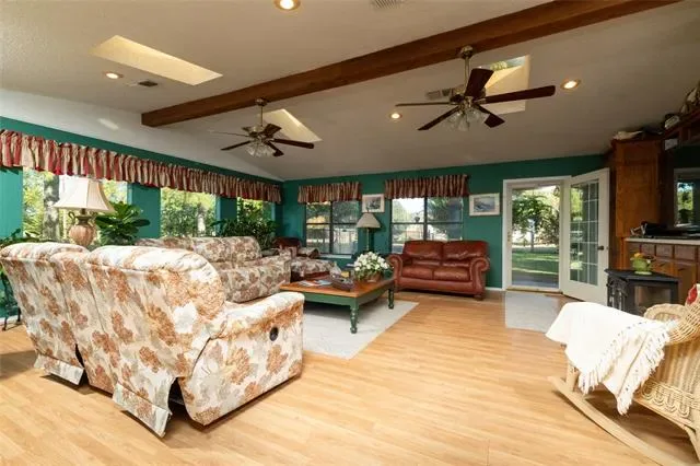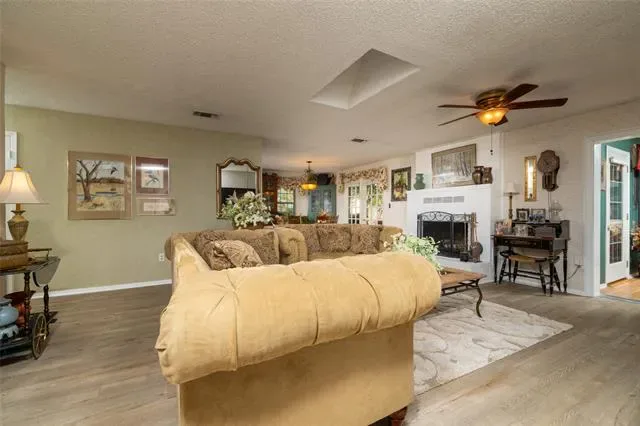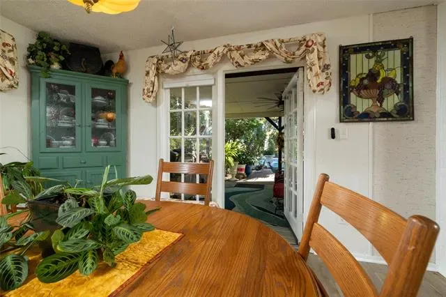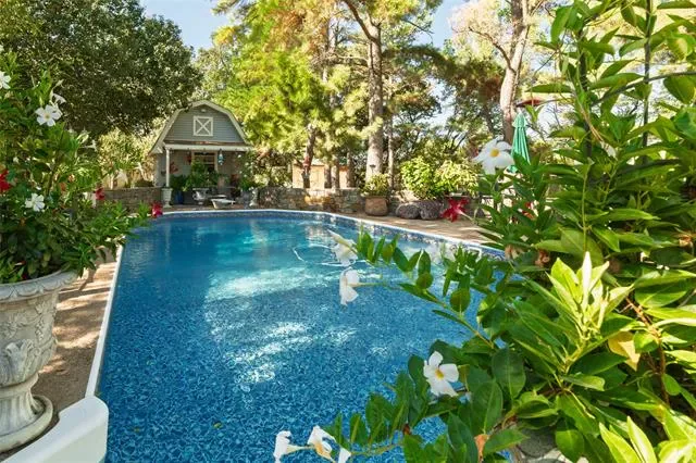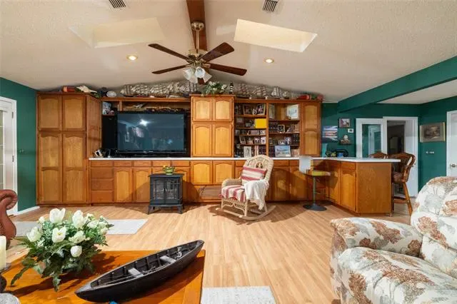 This charming three-bedroom, two-bathroom home sits on a generous acre of land with mature landscaping. There is a large extra living area with lots of built-in cabinets for those fun family evenings. Skylights in the living areas make the home light and bright! The updated kitchen features granite countertops and glass fronted cabinets. This home recently had the floors replaced with wood looking laminate. The property boasts a sparkling swimming pool, perfect for relaxing or entertaining, and a serene pond surrounded by trees that adds to the peaceful ambiance. The roomy two-car garage has a work area with built in cabinetry. There is extra parking for RV. It’s an ideal blend of comfort and nature