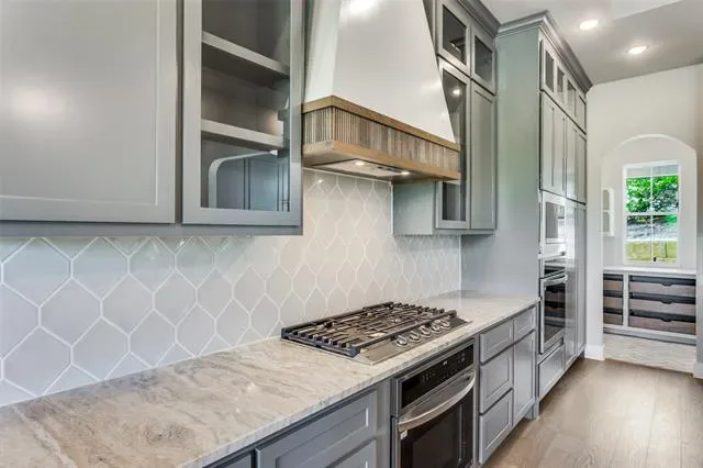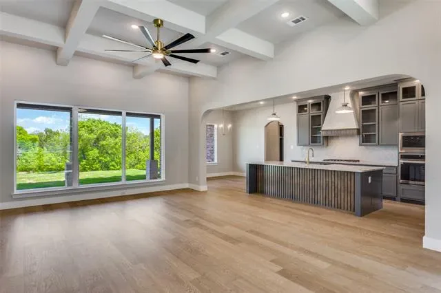 The bright, open layout features a beautifully appointed kitchen with an oversized island, walk-in pantry, and seamless flow into the great room—perfect for everyday living and entertaining. A wall of windows overlooks the large rear porch, inviting plenty of natural light indoors.