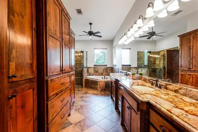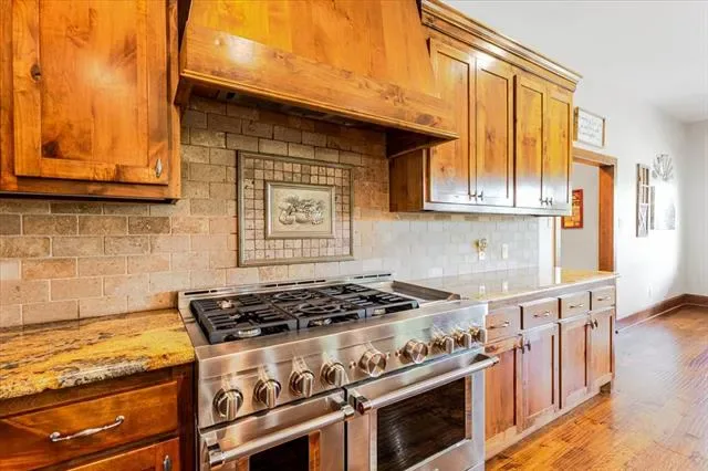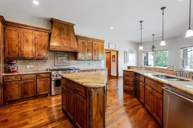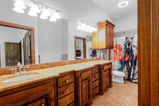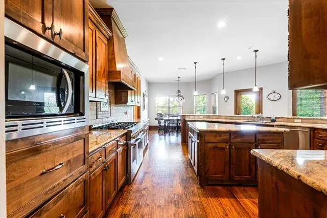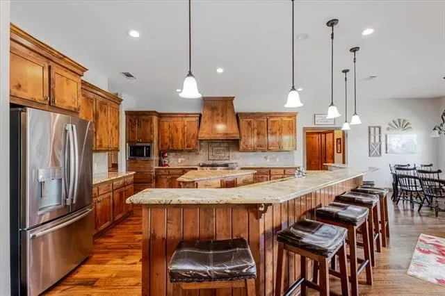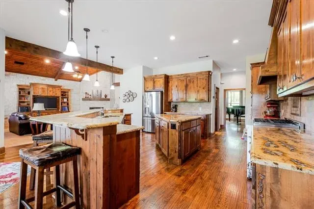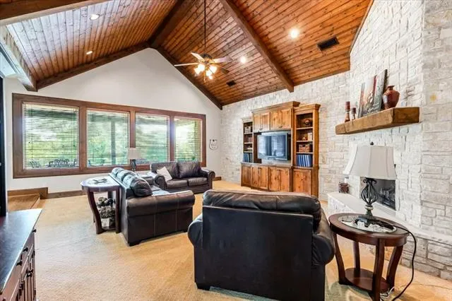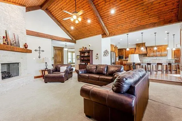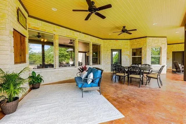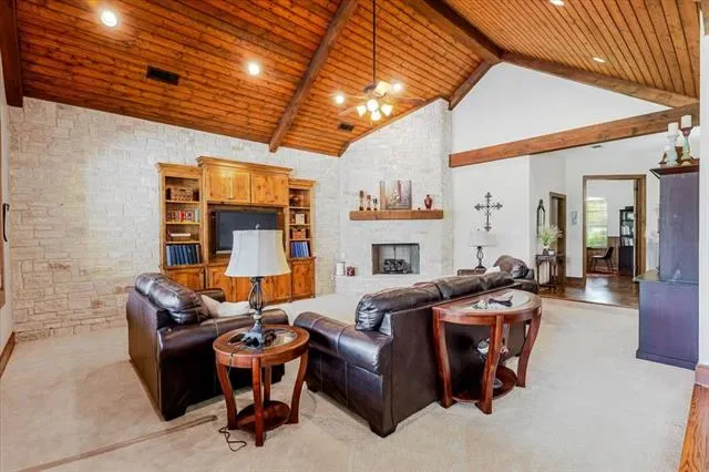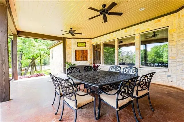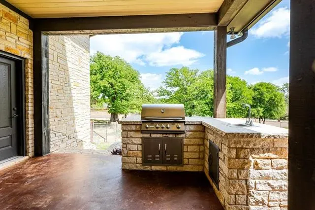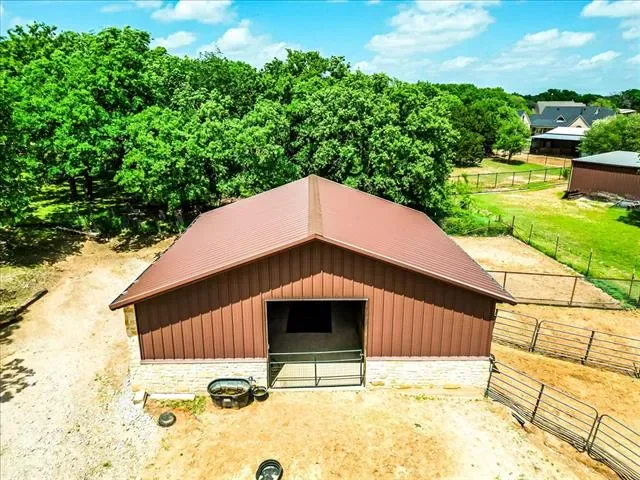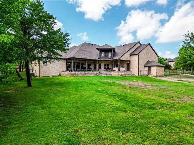 Set on 4.02 acres in Millsap ISD, this corner-lot property offers a functional layout, usable land, and a location that makes everyday living easy, with horses permitted. Conveniently located near Ric Williamson, you get quick access to Weatherford and I-20 while still enjoying a more private setting. The home offers approximately 5,668 square feet designed for both comfort and flexibility, featuring a vaulted living room with a floor-to-ceiling rock fireplace and expansive windows overlooking the back of the property. The kitchen is built for everyday living and entertaining with a large island, 48-inch range, walk-in pantry, and seamless flow into the breakfast area and formal dining. The primary suite is a true retreat, complete with its own fireplace, a spacious sitting area with three large windows, and a well-appointed bath with jetted tub, glass tile shower, and oversized closet with custom storage. Outdoor living is a standout feature, with an oversized covered back porch offering multiple seating and dining areas, an outdoor kitchen, and a private feel created by mature trees that provide natural screening while still allowing room for horses. The land is usable and functional, complemented by a 3-stall horse barn with tack room, feed room, and wash rack. Additional features include a dedicated office, secondary bedrooms with well-designed bath access, media room, game room, and an upstairs bedroom with private balcony, offering a strong combination of comfort, usability, and lifestyle in a growing area of Parker County.