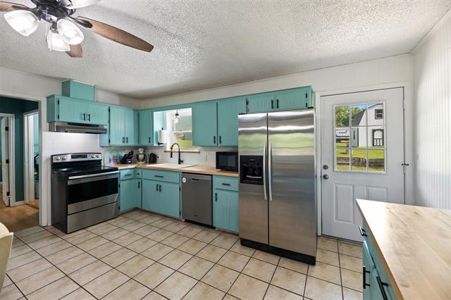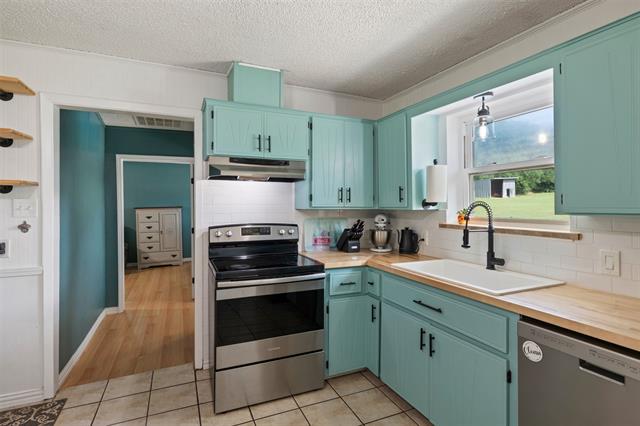 Step inside to find new paint throughout, a warm and inviting living space, and a cozy wood-burning fireplace perfect for relaxing evenings. The kitchen is a true standout, featuring butcher block countertops, a classic farmhouse sink, and a functional layout designed for both everyday living and entertaining.
