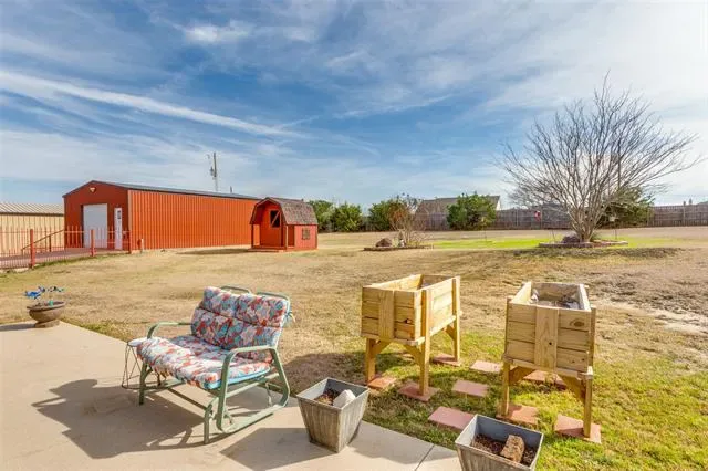 Outdoors, you’ll love the 720 sq ft workshop with electricity—a dream for hobbyists or extra storage. The fully fenced property includes pipe and wrought iron fencing, plus privacy wood fencing along the back. A storm shelter on the back patio adds peace of mind. Small garden tool shed, the patio included a storm shelter and TV, SPRINKLER SYSTEM TAKES CARE OF THE ENTIRE YARD. New roof 2023. With plenty of parking, no HOA, and the charm of quiet country living just minutes from Weatherford’s shops and dining, this home truly has it all.