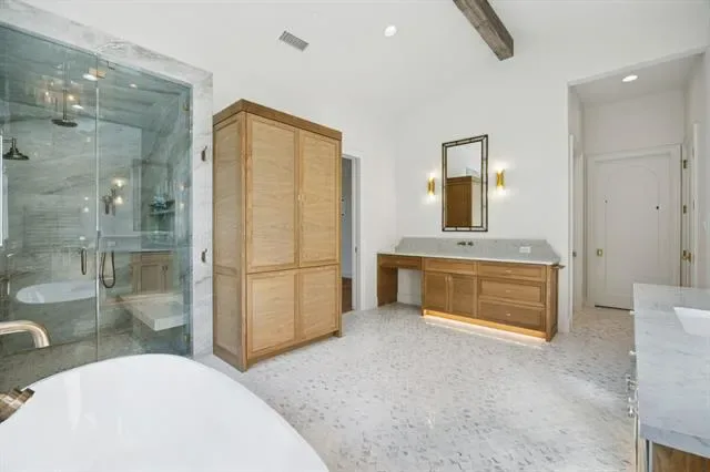 Nestled on .92 acres within the gated community of Glenwyck Farms in Westlake, this extraordinary new construction by Calais Custom Homes took 3 years to build &' represents the pinnacle of architectural sophistication and craftsmanship. Spanning 6,750 sqft, this 5 bedroom, 6 bath residence blends natural surroundings with modern design. A DaVinci Slate roof with lightning protection &' two custom chimneys highlight the home’s craftsmanship. The home offers an expansive circular drive, automatic gate &' 4 car garage with Tesla chargers &' epoxy floors in addition to two covered patios with marble pavers, cedar ceilings, remote screens, outdoor kitchen &' a sunken firepit that overlook the beautiful grounds. The elegant interior features vaulted &' beamed ceilings, wide-plank white oak floors &' level 4 wall finishes. The chef’s kitchen is something to envy with Taj Mahal quartzite counters, Wolf &' Sub-Zero appliances including a Miele coffee bar, plus a prep kitchen with a 36” Thermador range, refrigerator, dishwasher, Miele steam oven &' custom cabinetry with vegetable drawers. The spacious great room features surround sound, a vaulted ceiling &' marble fireplace. The primary suite &' spa-like primary bath provides that perfect escape with Brizo plumbing fixtures, a steam shower, towel warmer &' dual custom His &' Hers closets with private laundry. Also located downstairs is a guest suite with stone fireplace, a media &' gameroom with quartzite bar, theater-grade projector &' Dolby Atmos system, wine room &' private office. 3 additional bedrooms with two living areas &' balcony are located upstairs. The home is fully integrated with Savant Smart Home controls for Lutron lighting, audio, security cameras, climate systems &' Trane HVAC systems &' the windows are pre-wired for automatic shades. Residents in Glenwyck Farms enjoy ponds, walking trails &' a 13.5 acre park along with top-rated schools including Westlake Academy &' Carroll ISD.
