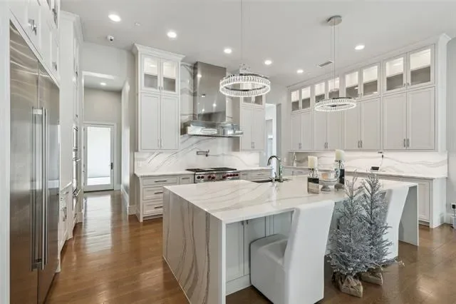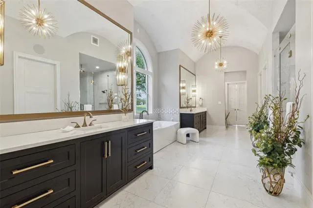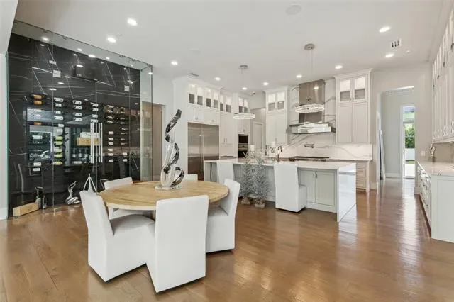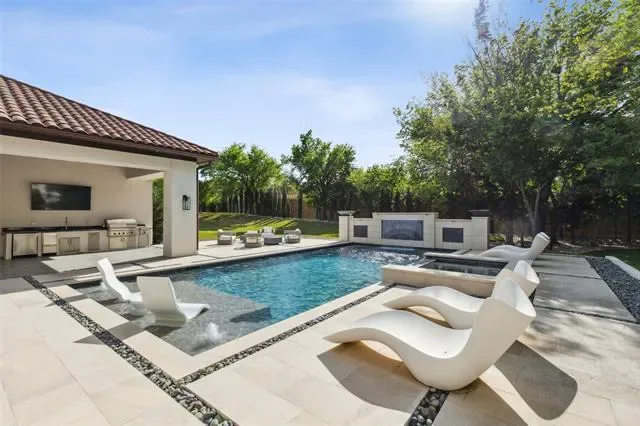 Prepare to be captivated by this Mediterranean-inspired masterpiece that seamlessly blends classic architecture w modern transitional elements, located in prestigious Quail Hollow. This 24 hour guard gated community is the most highly coveted neighborhood in Westlake. This luxurious 7,810 sq ft custom home boasts 5 bdrms, 5.2 baths, & a 5 car garage w porte-cochere. Step inside to discover a world of elegance, featuring pristine white marble flooring, European inspired cascading staircase, custom designer tile adorning walls & ceilings, & more! A temp-controlled wine wall w glass doors, book-matched marble feature wall w fireplace, & main floor media room are a glimpse of the exquisite details that await. The owner’s suite is a sanctuary of comfort & style,offering expansive windows overlooking a private backyard oasis, & a safe-storm room. Outside, unwind in your own paradise w a sparkling pool & spa, expansive covered patio w fireplace, outdoor kitchen, & putting green. This home is a testament to luxury living at its finest, where every detail has been meticulously crafted to create an unparalleled living experience. Westlake Academy and open enrollment to CISD!
